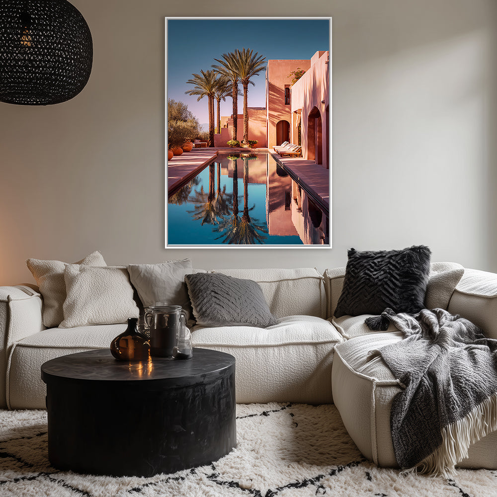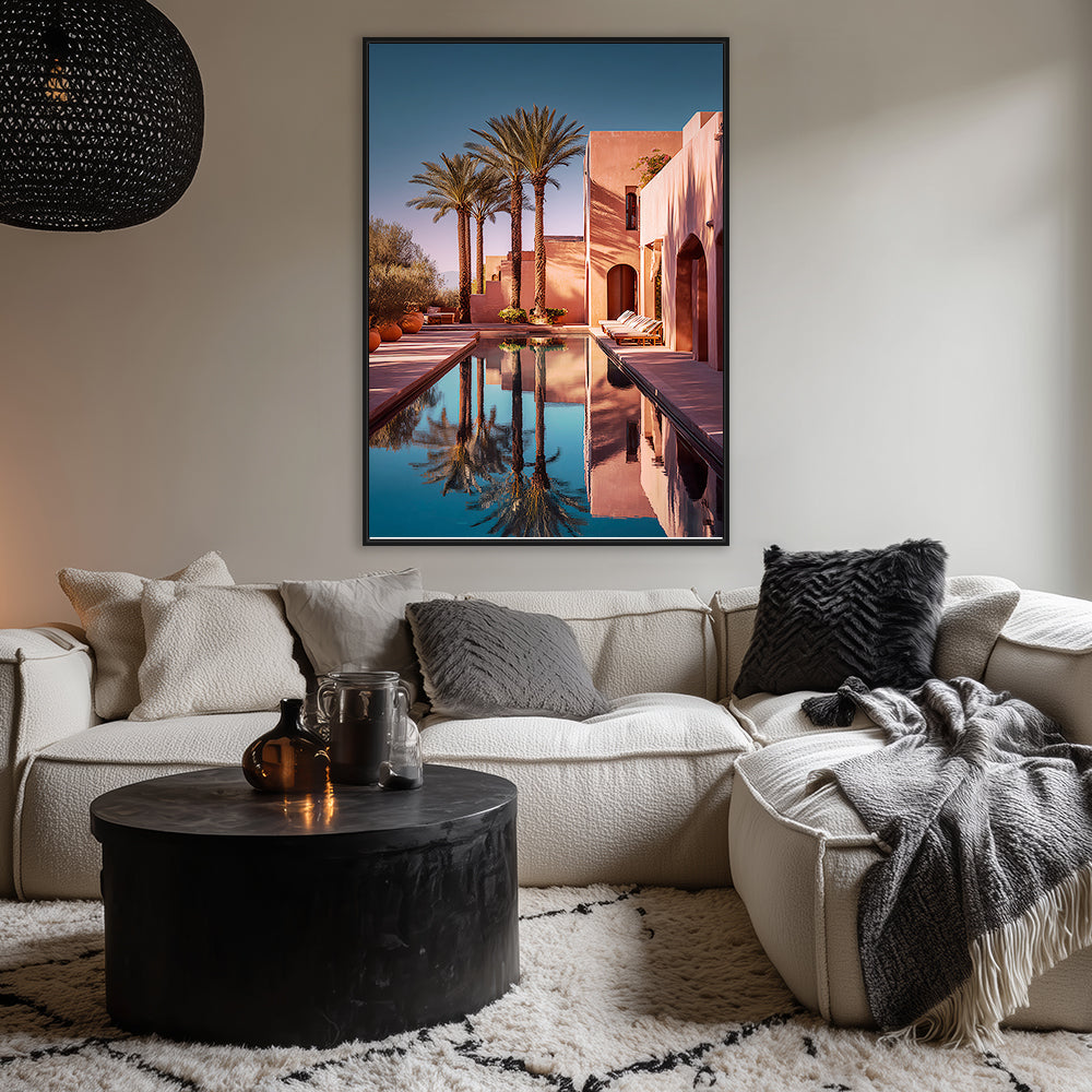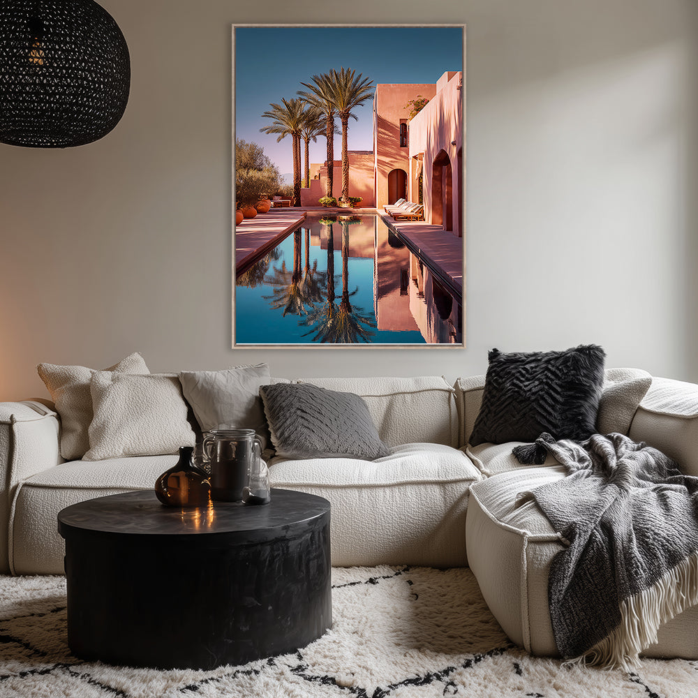 اهرب إلى واحة عصرية مع أشجار النخيل وحوض السباحة، تعكس الهدوء والأناقة.