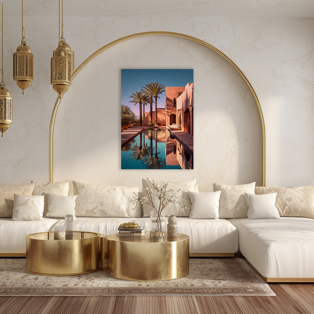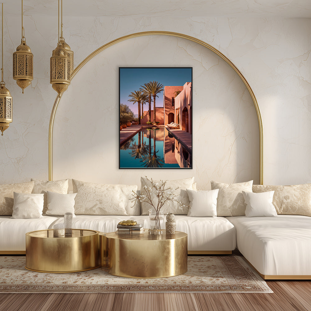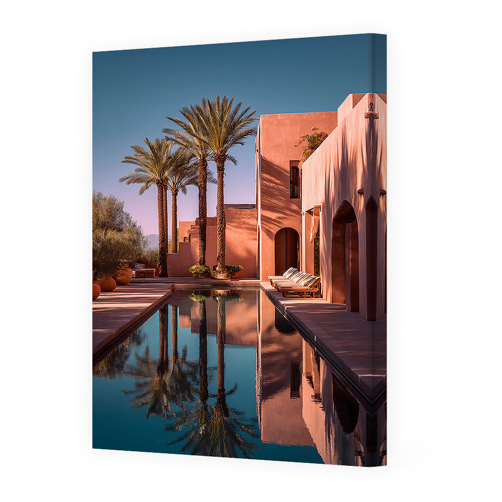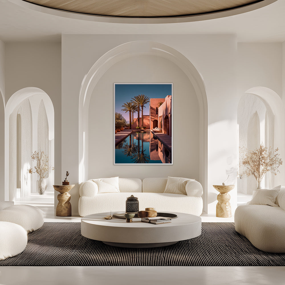 اهرب إلى واحة عصرية مع أشجار النخيل وحوض السباحة، تعكس الهدوء والأناقة.