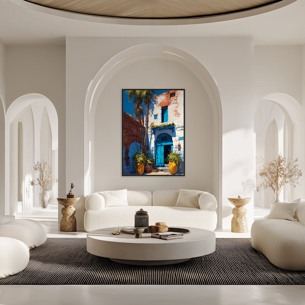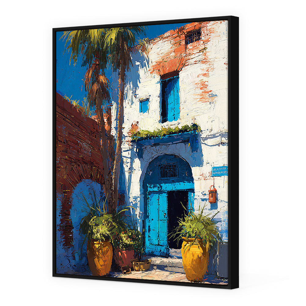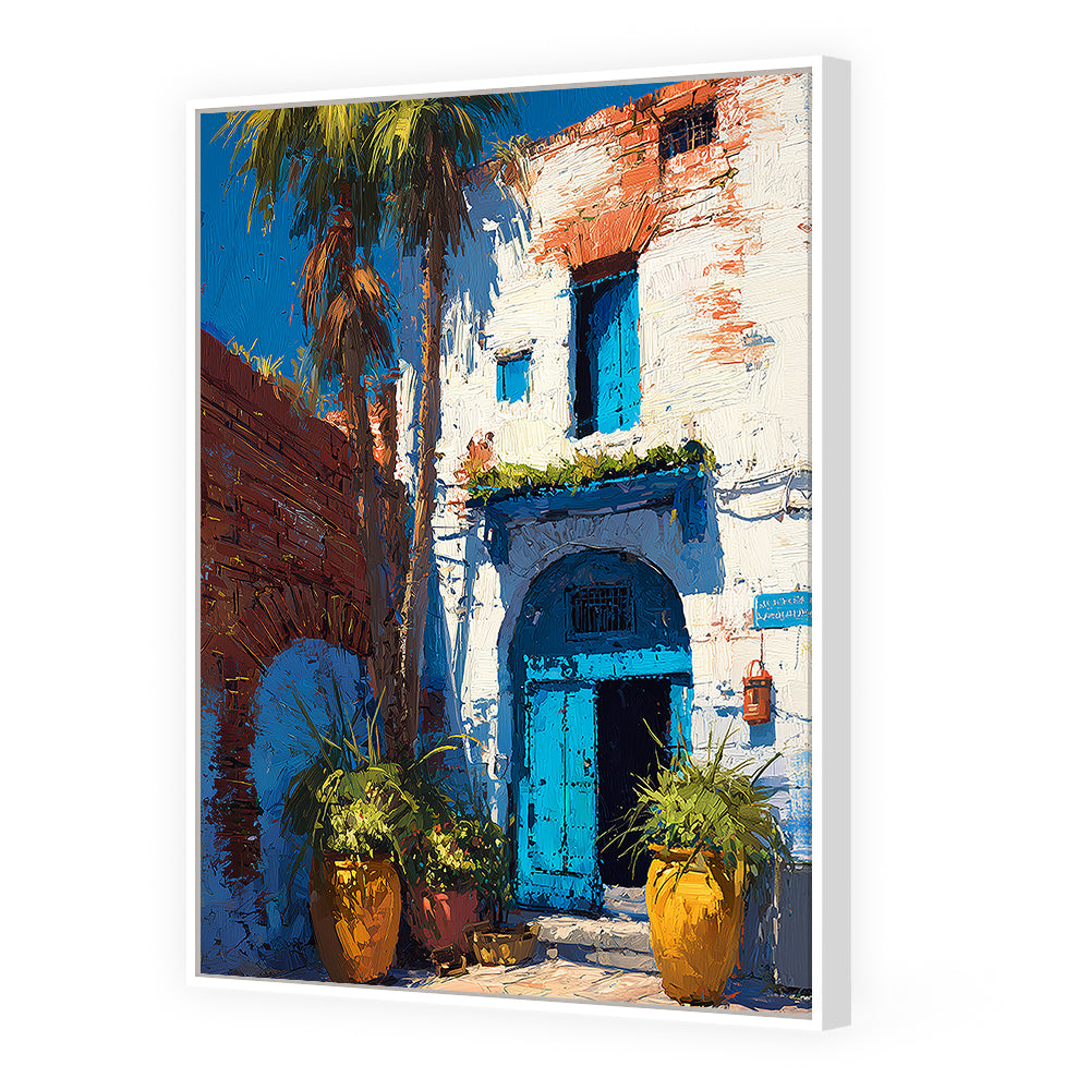 Évadez-vous dans une ruelle méditerranéenne ensoleillée, où couleurs et textures se mêlent harmonieusement.