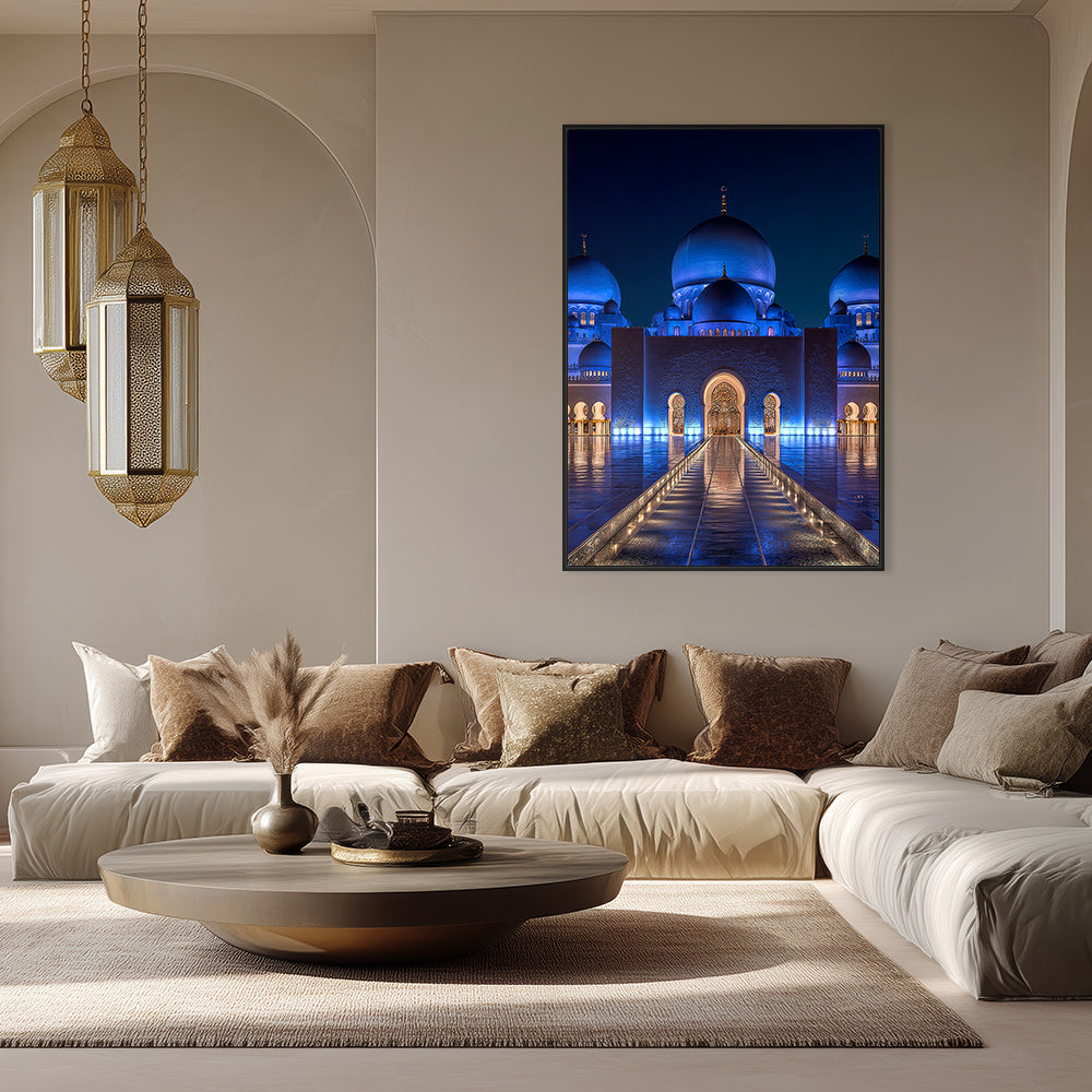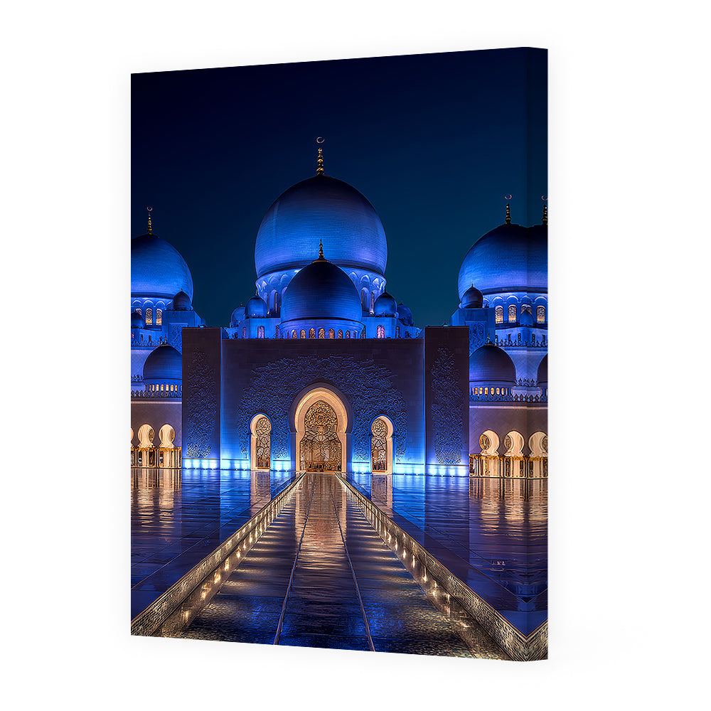 Majestueuse architecture illuminée sous un ciel nocturne, évoquant mystère et sérénité.