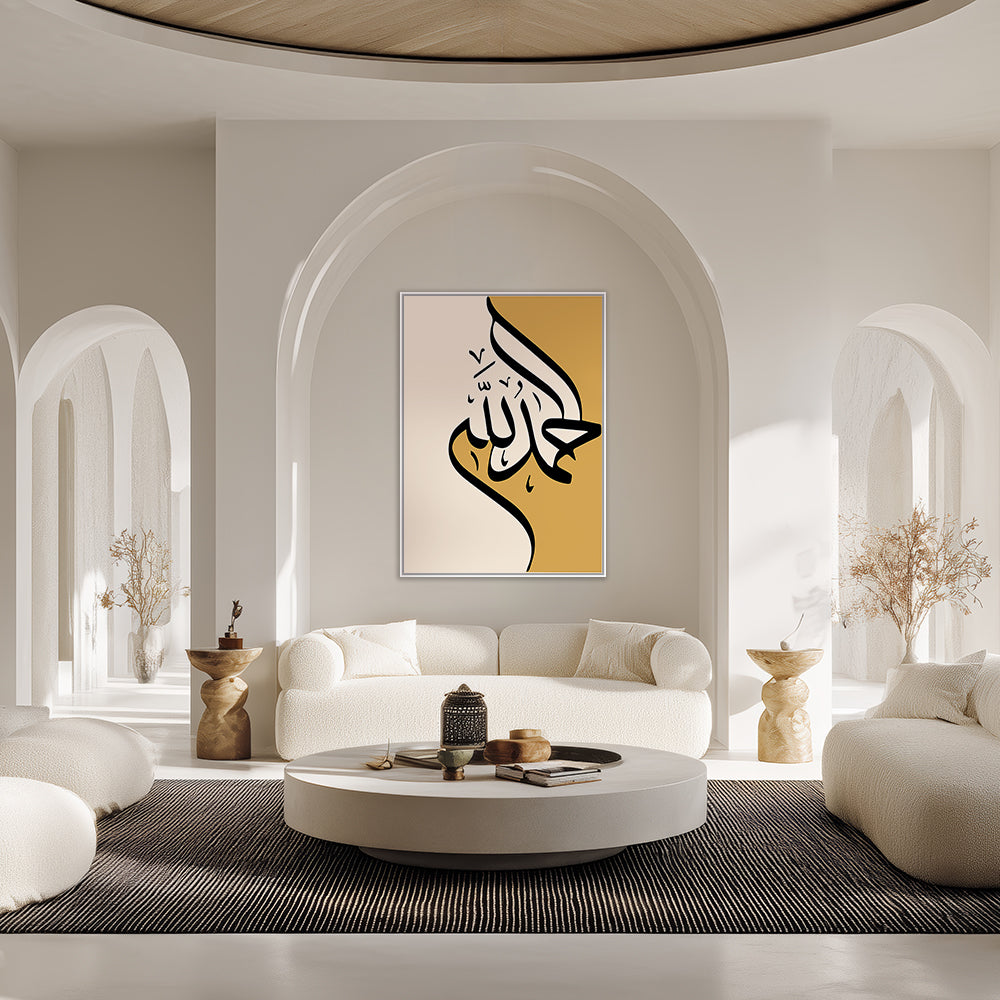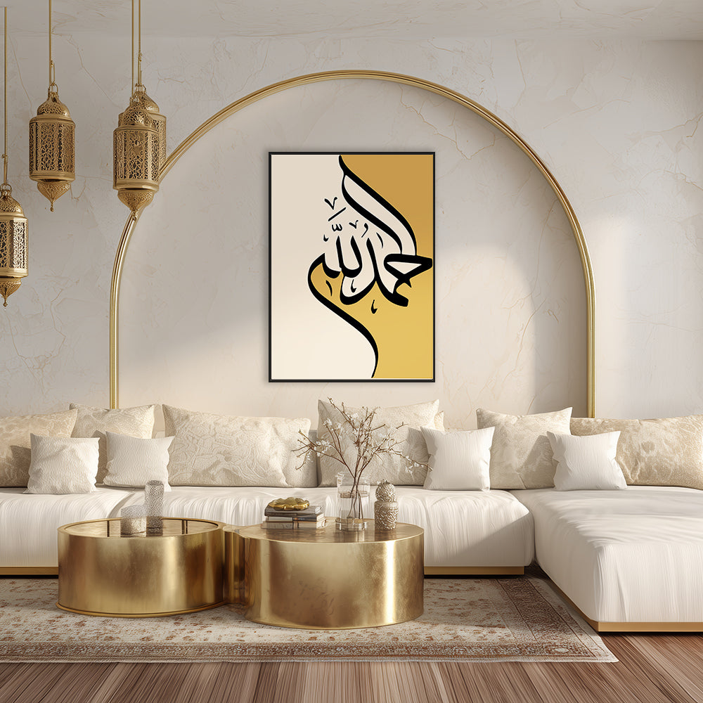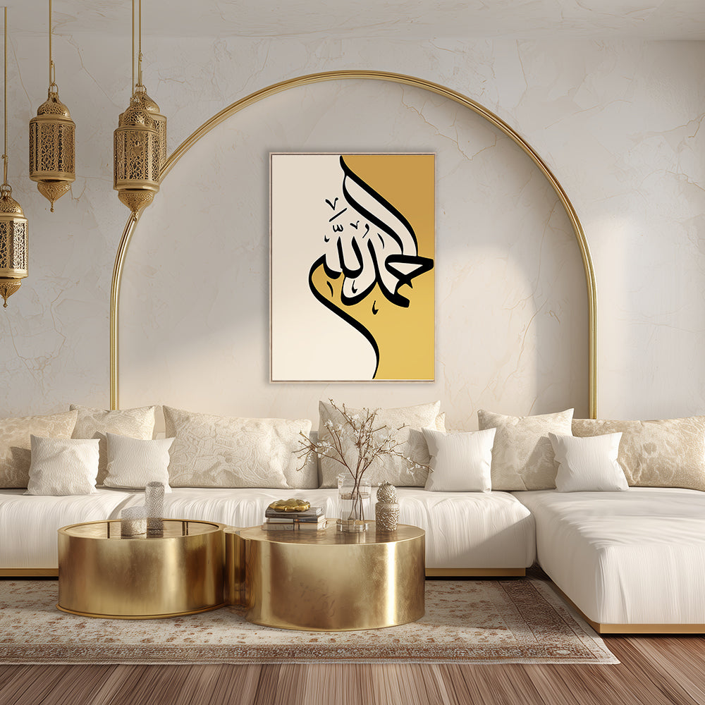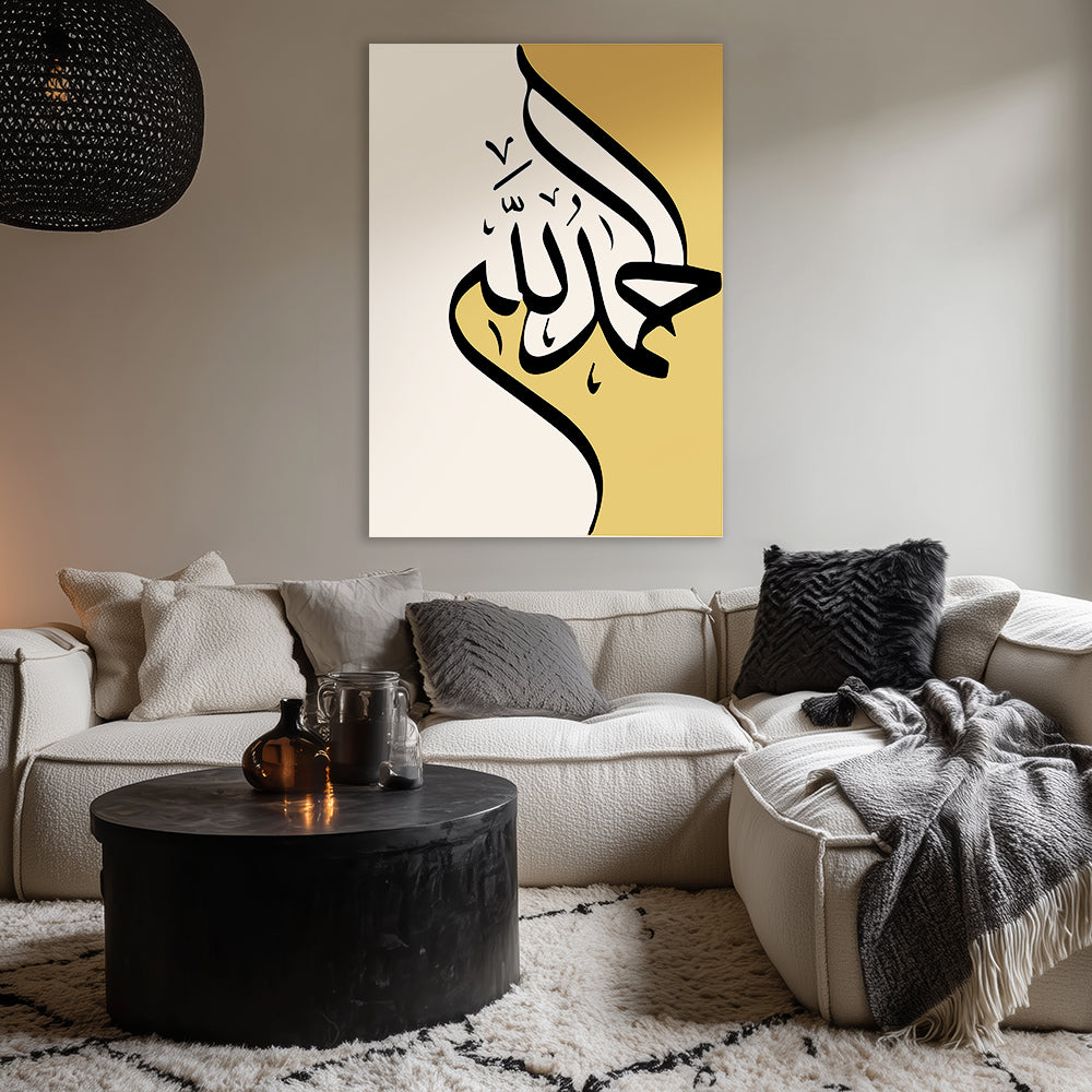 Calligraphie arabe moderne en noir et bronze, ajoutant une touche élégante et spirituelle à votre espace.