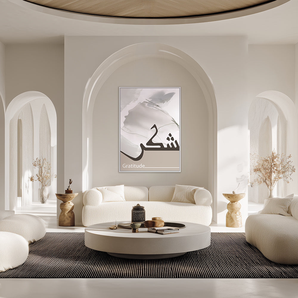 Harmonieux mélange de calligraphie et formes abstraites pour une ambiance apaisante et spirituelle.