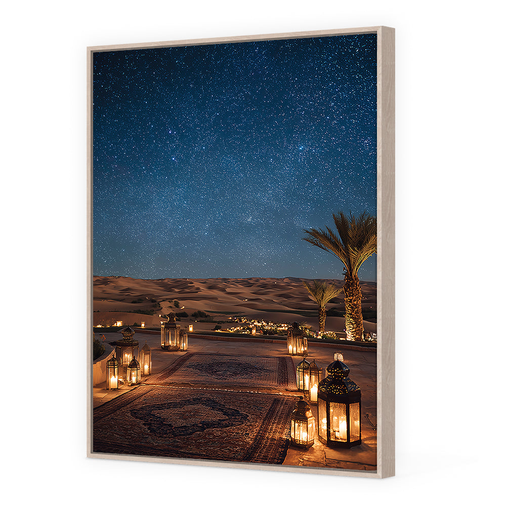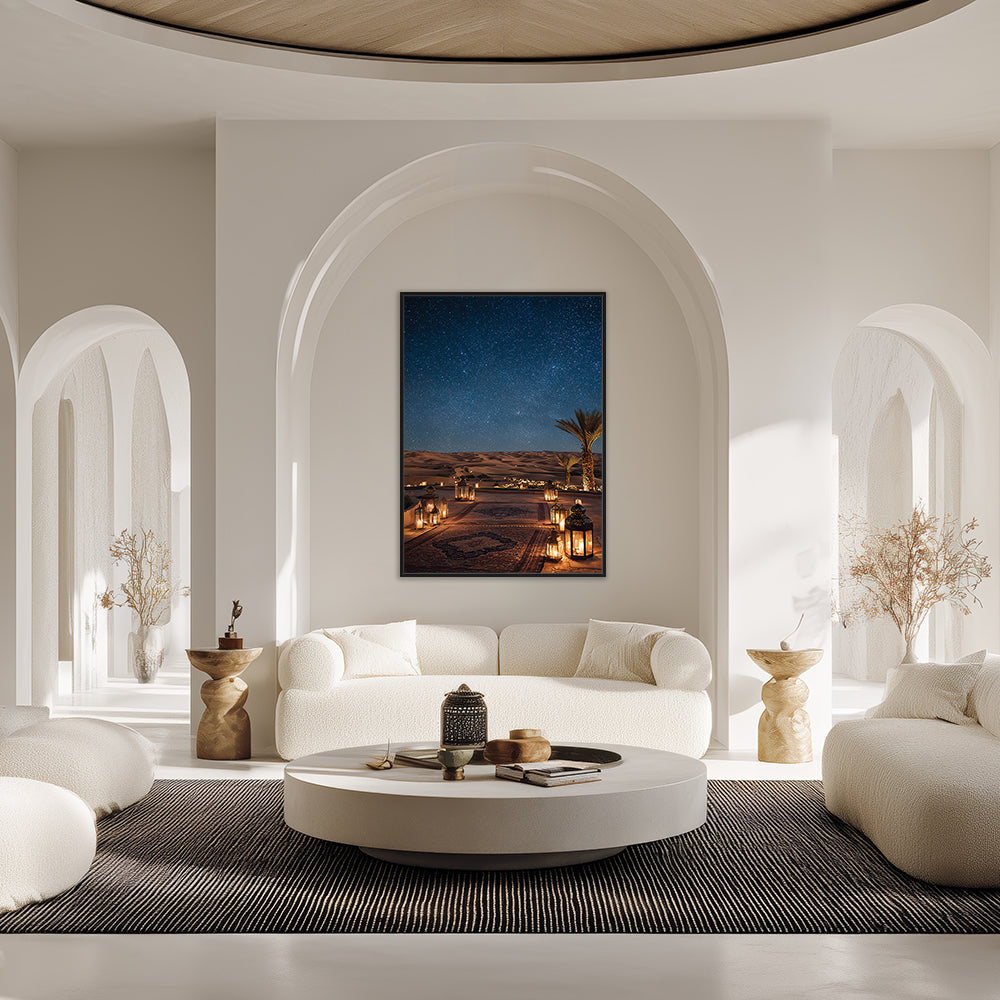 Évadez-vous sous un ciel étoilé, illuminé par des lanternes dans un désert paisible.