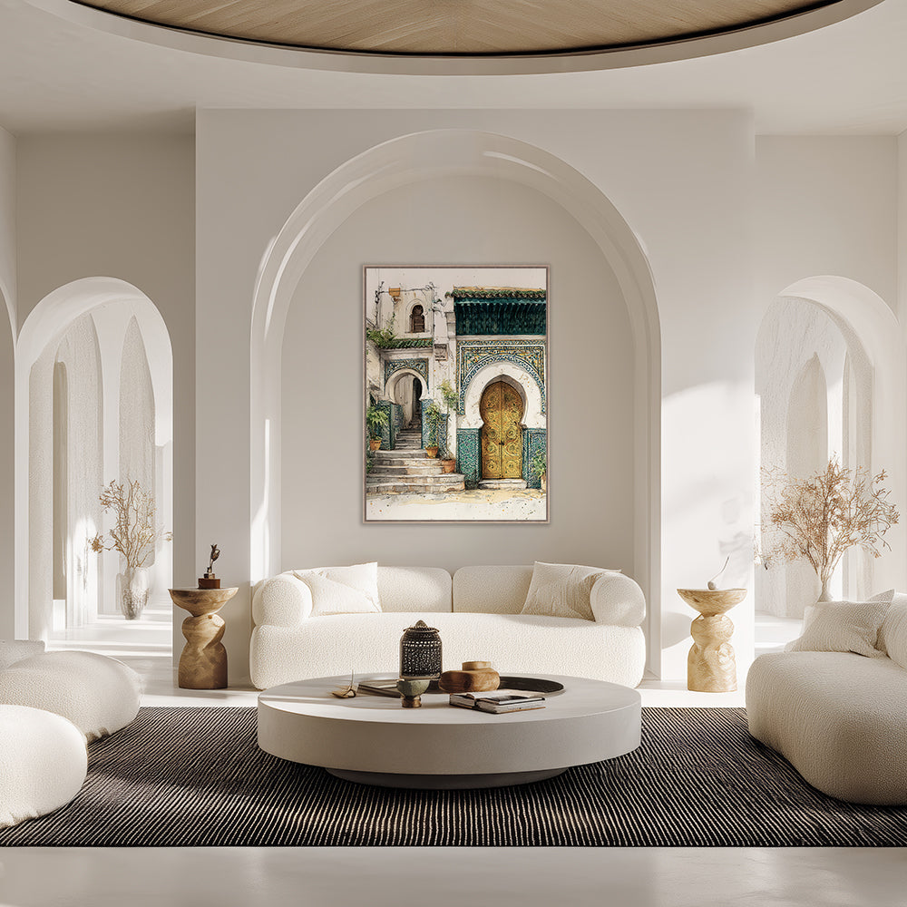 Découvrez l'élégance d'une architecture traditionnelle aux motifs ornés et couleurs apaisantes.