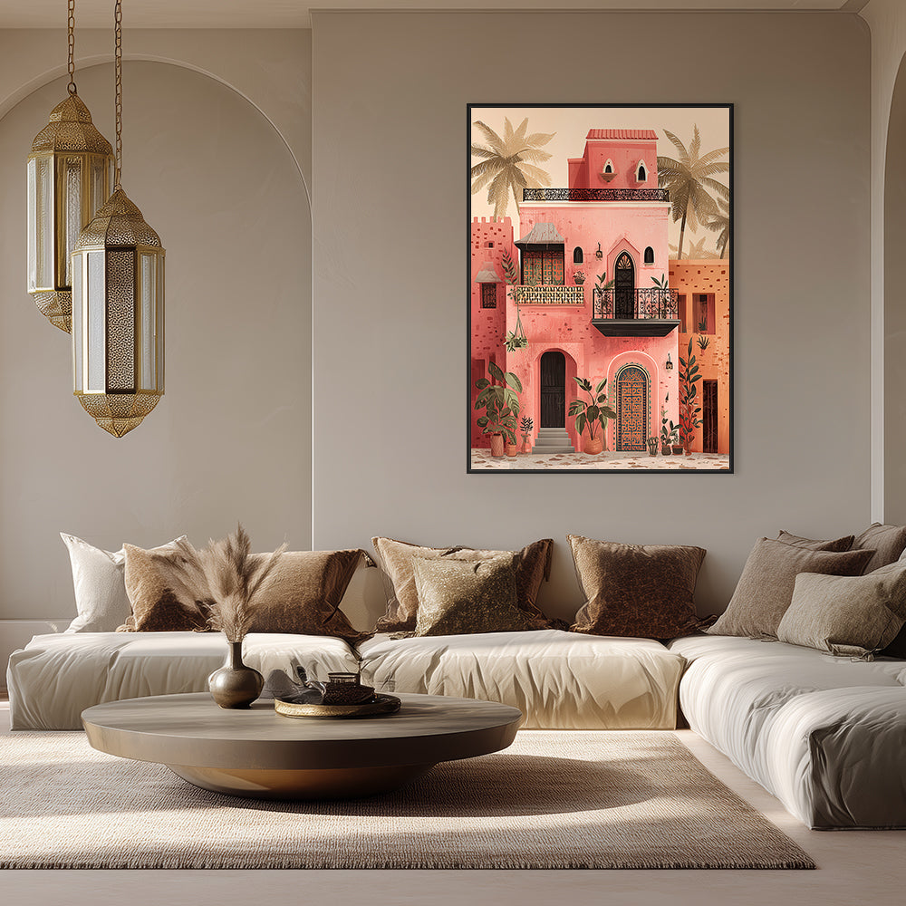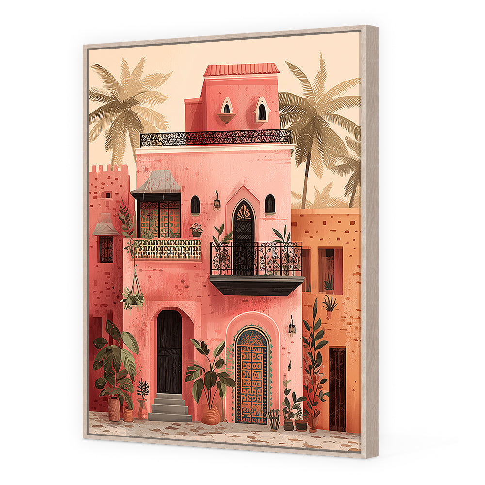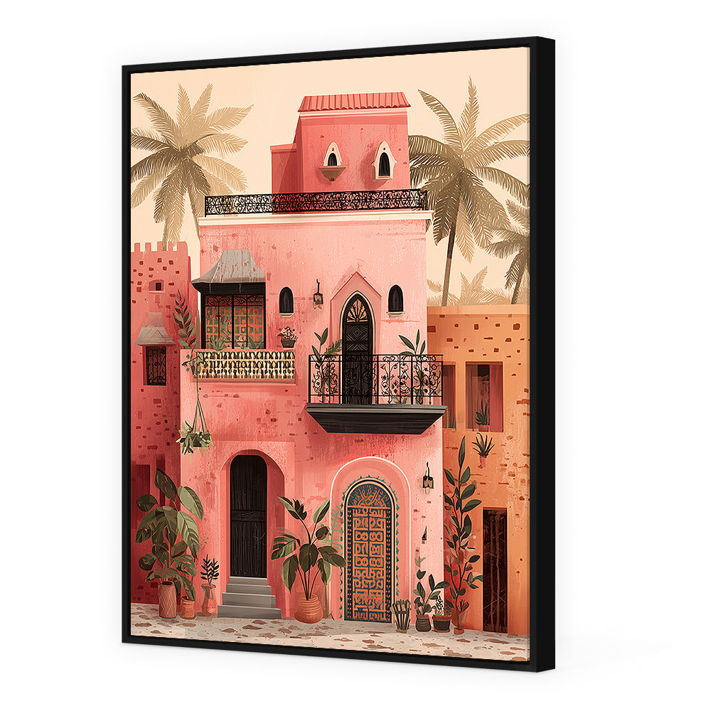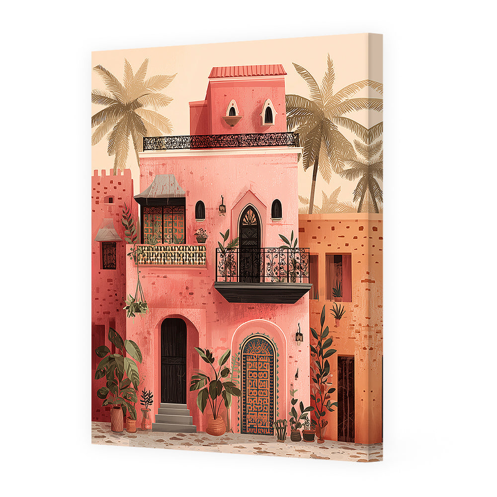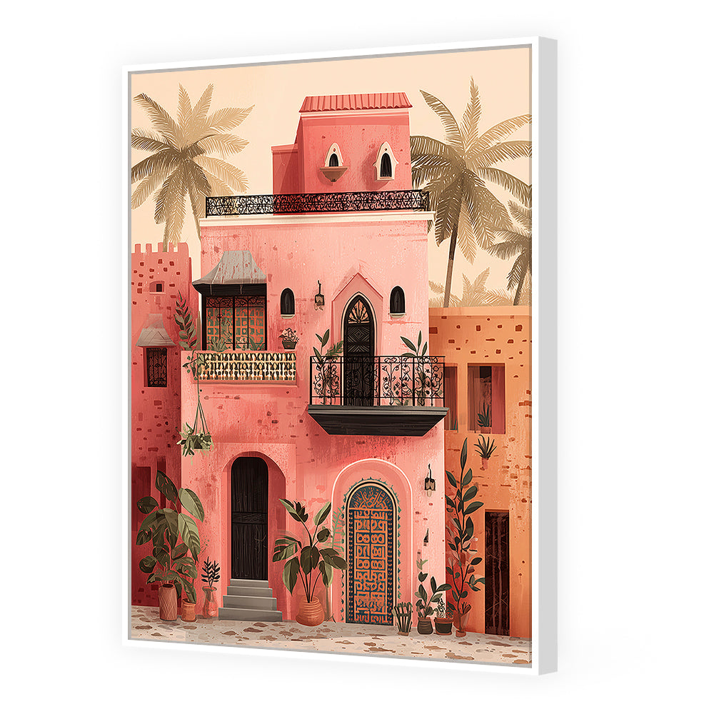 Explorez l'élégance d'une maison orientale entourée de palmiers et de plantes luxuriantes.