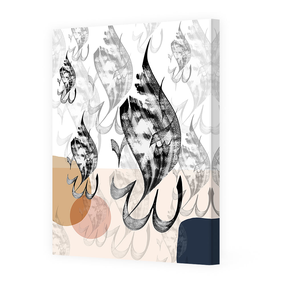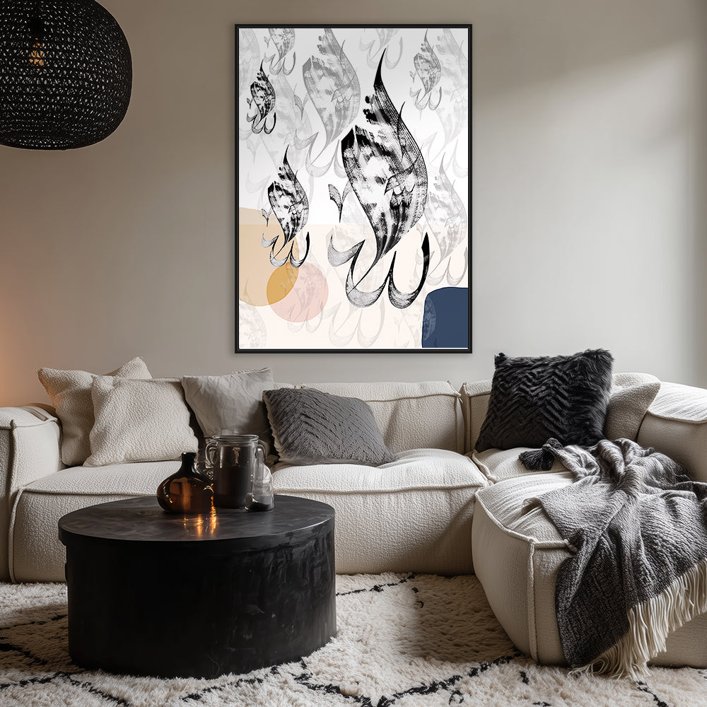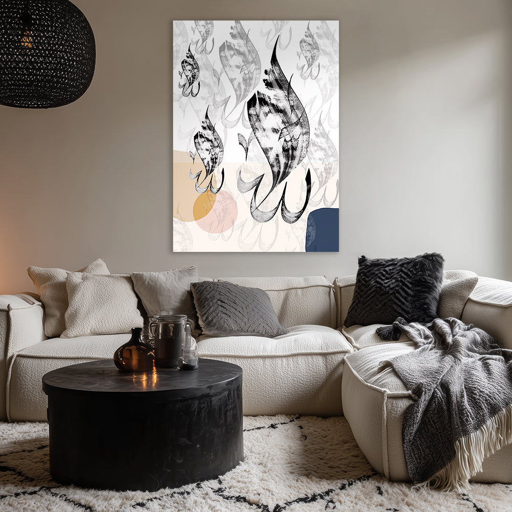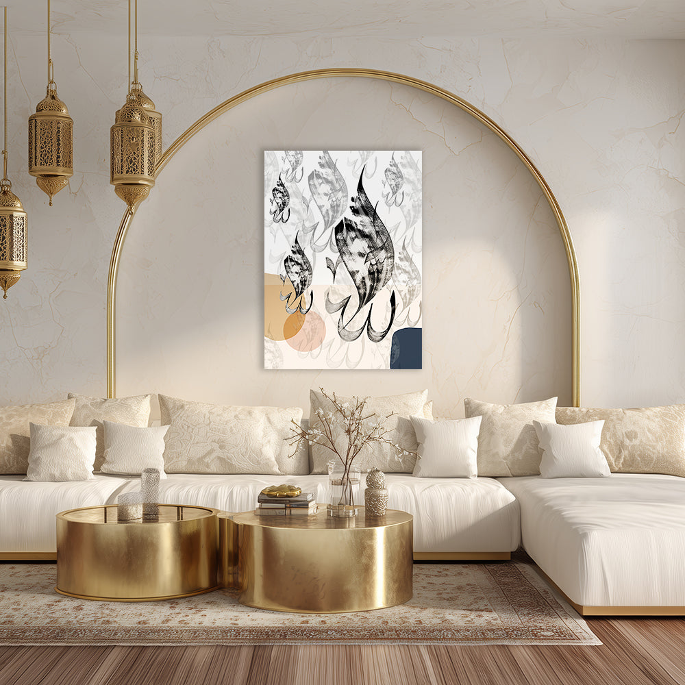 Une composition moderne fusionnant calligraphie et abstraction pour une ambiance élégante et contemporaine.