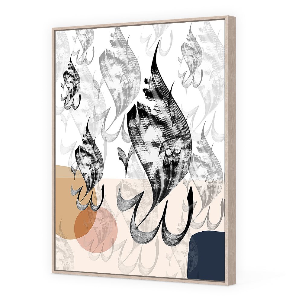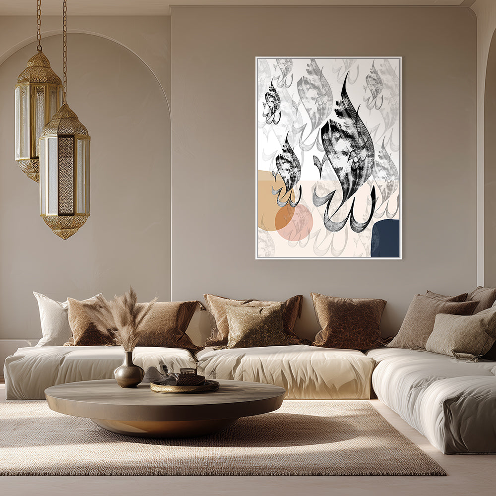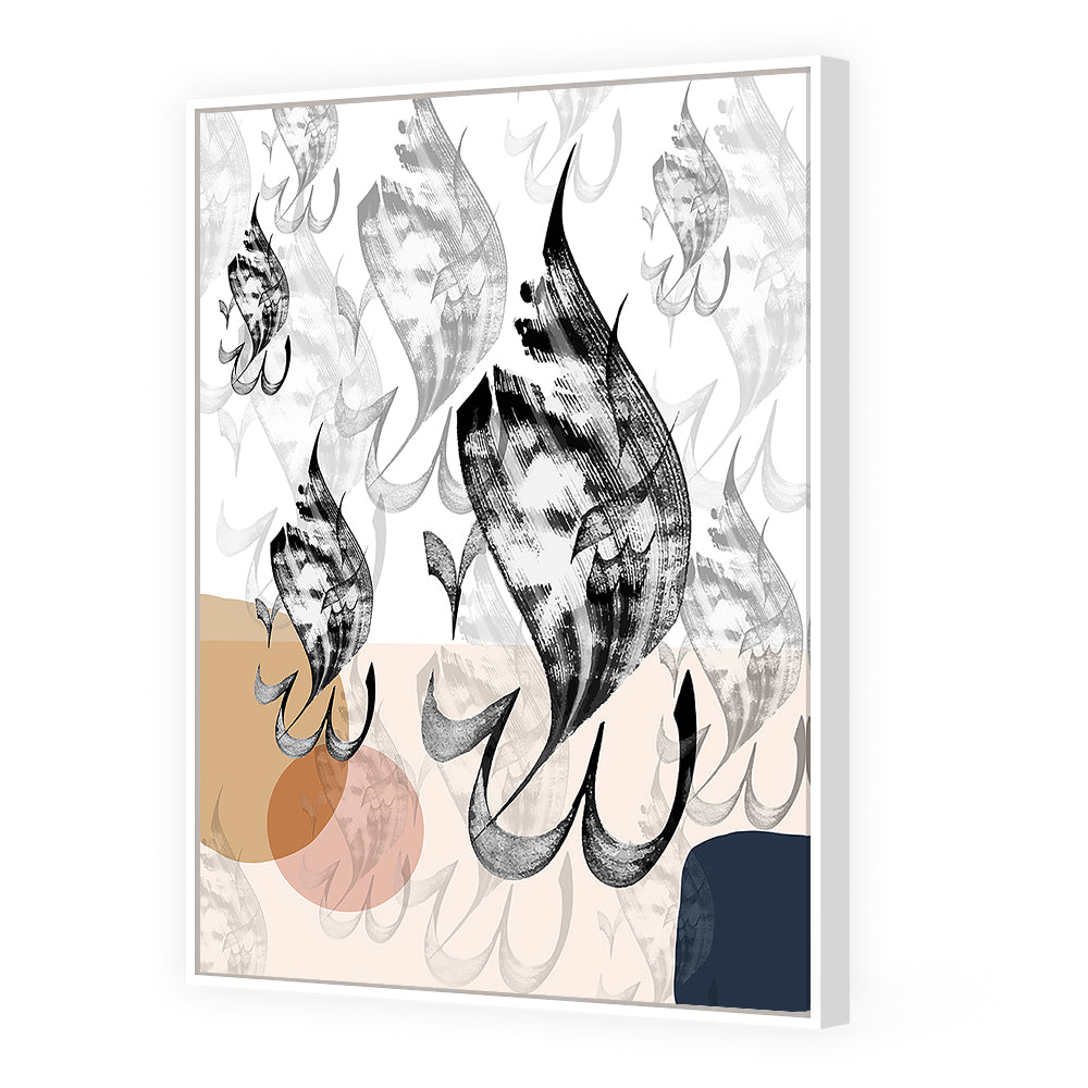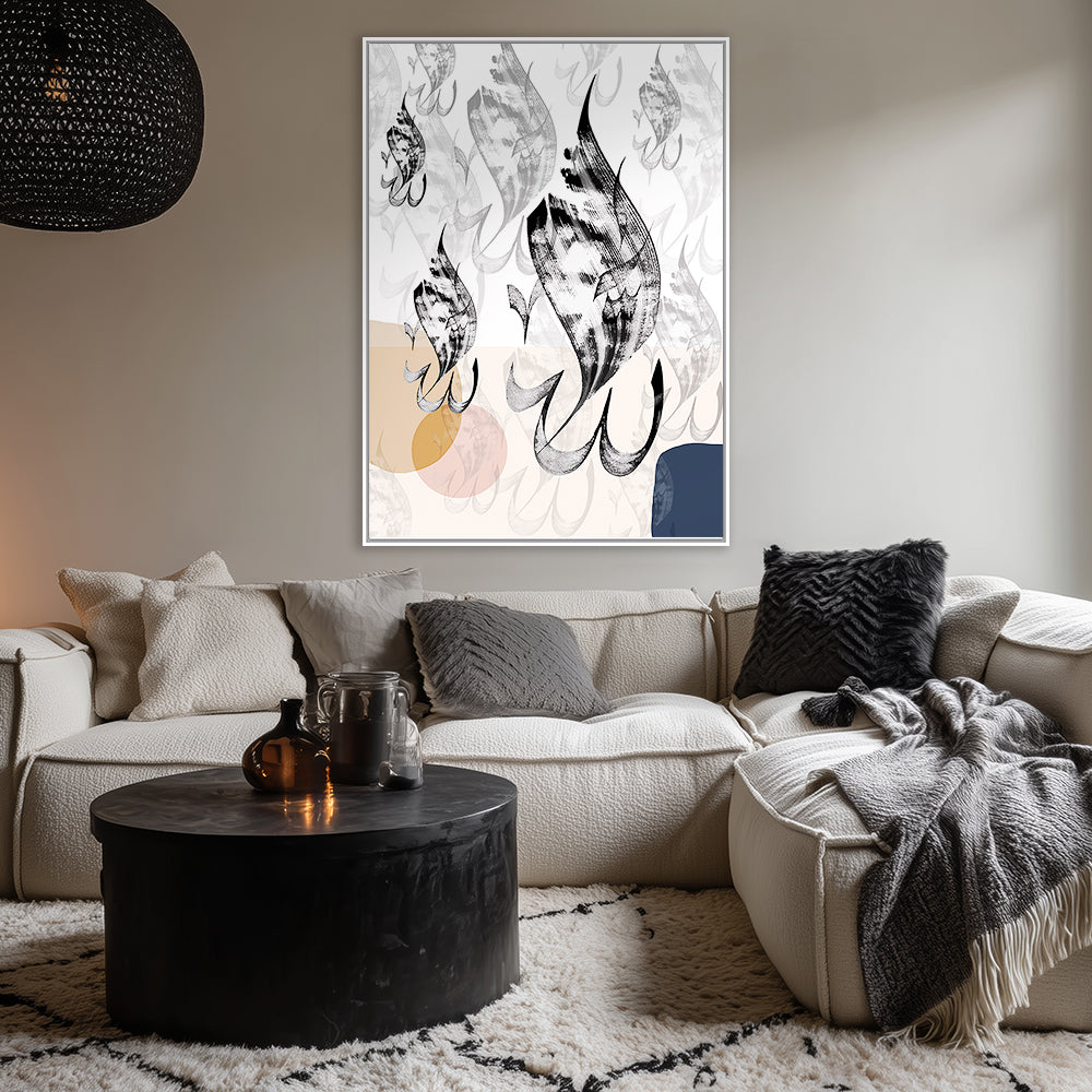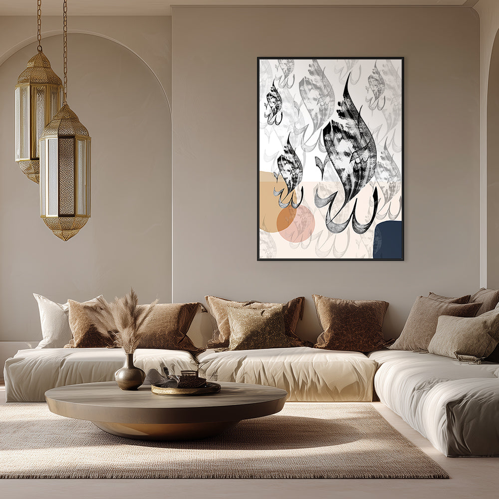 Une composition moderne fusionnant calligraphie et abstraction pour une ambiance élégante et contemporaine.