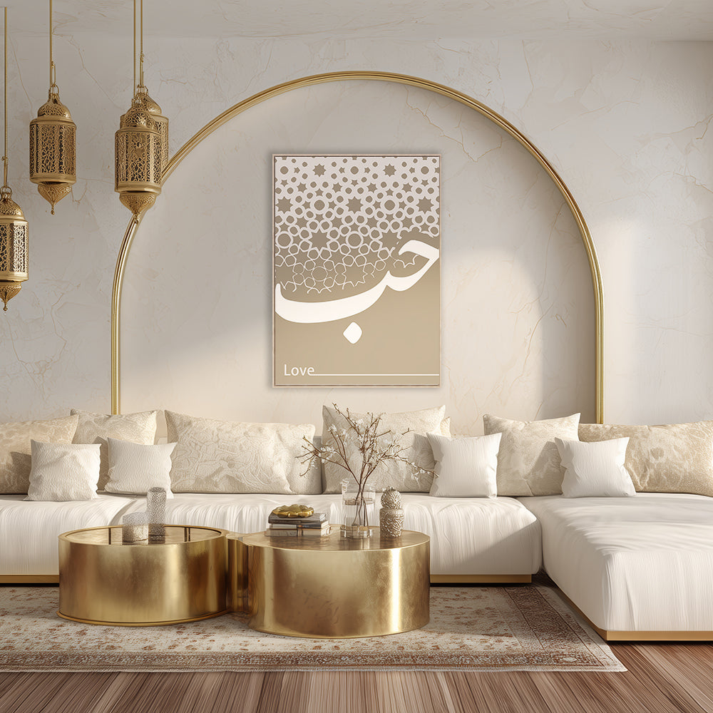 Calligraphie élégante avec motifs géométriques, évoquant amour et harmonie.