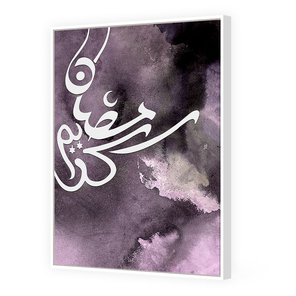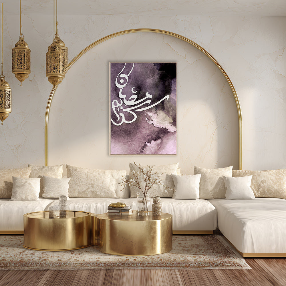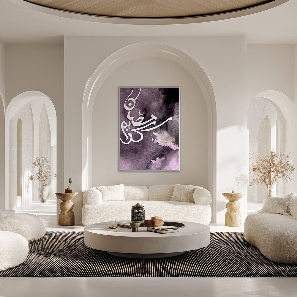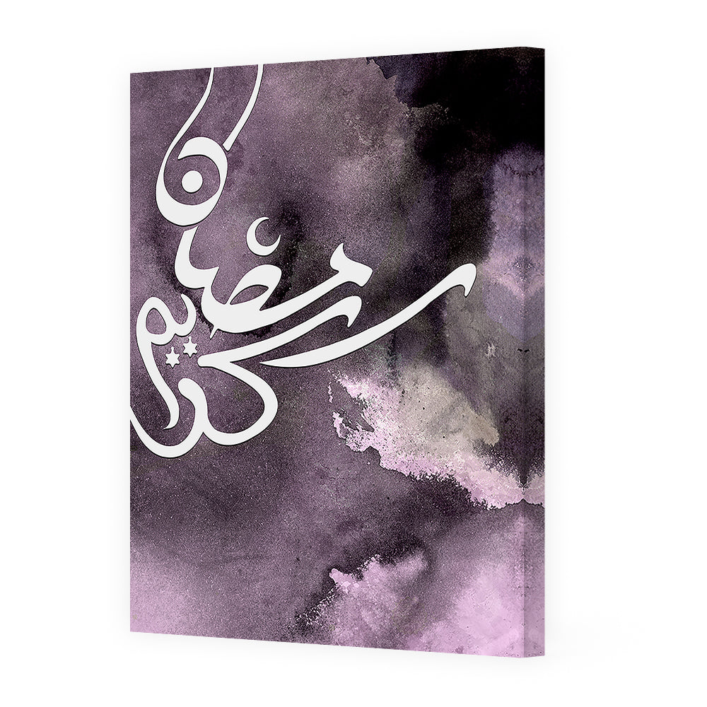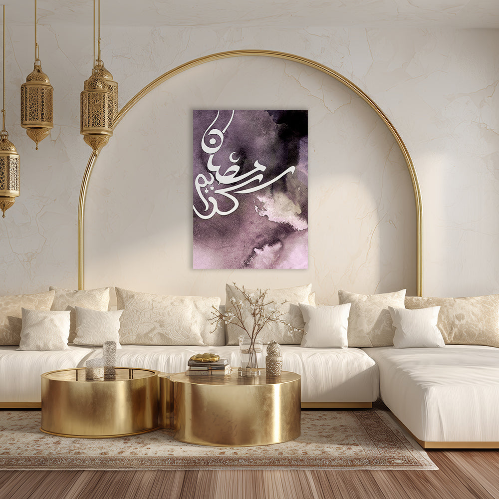 Calligraphie élégante sur fond abstrait violet, évoquant mystère et spiritualité.