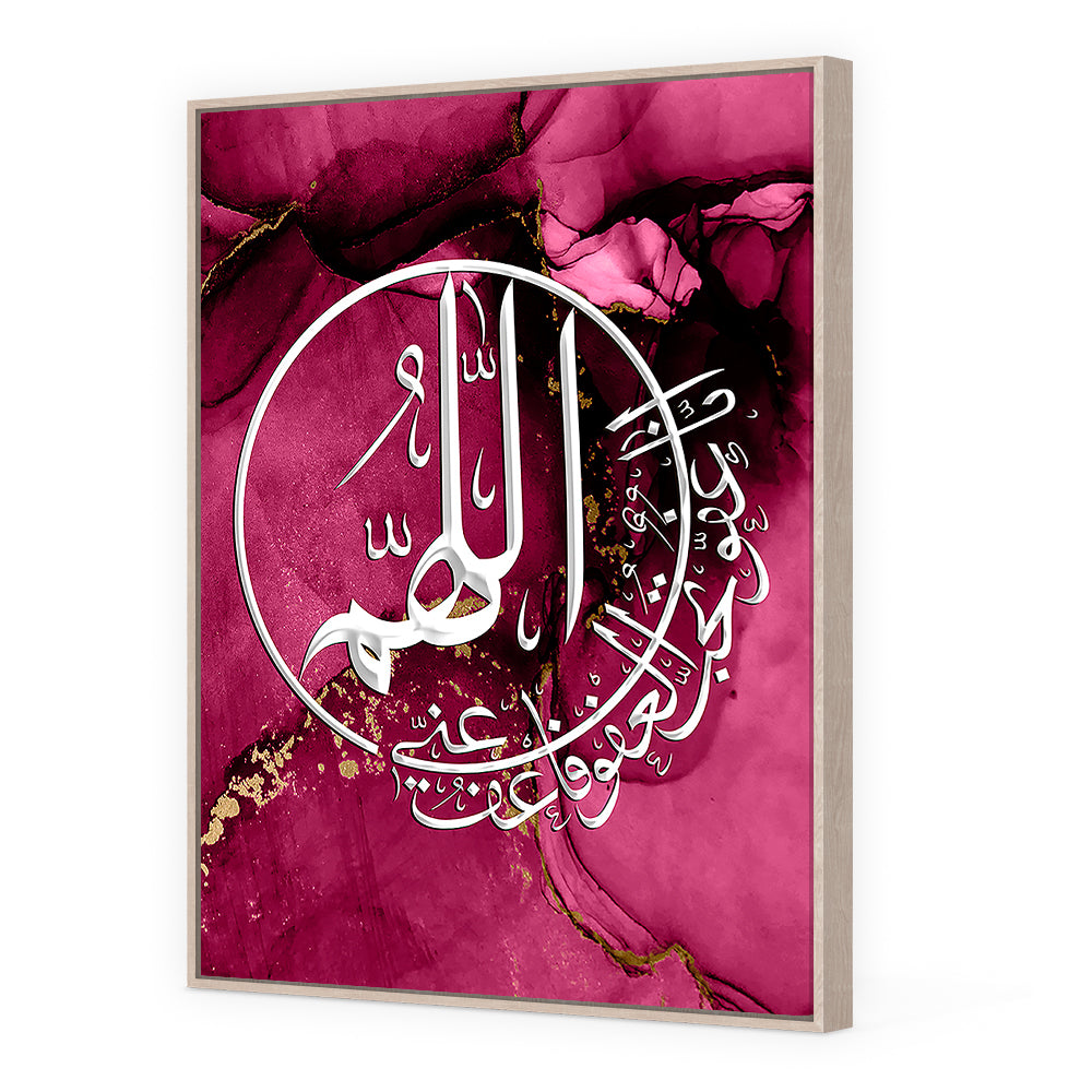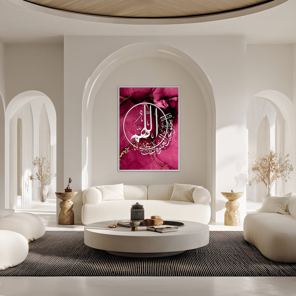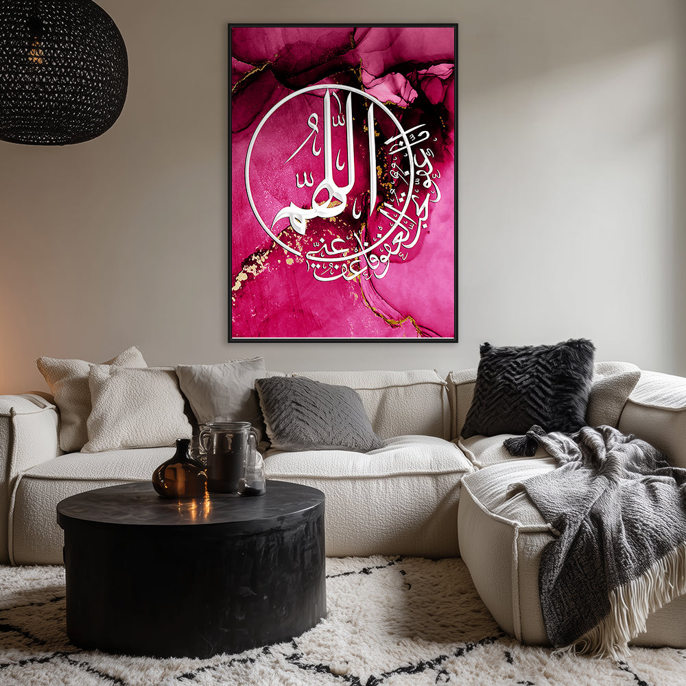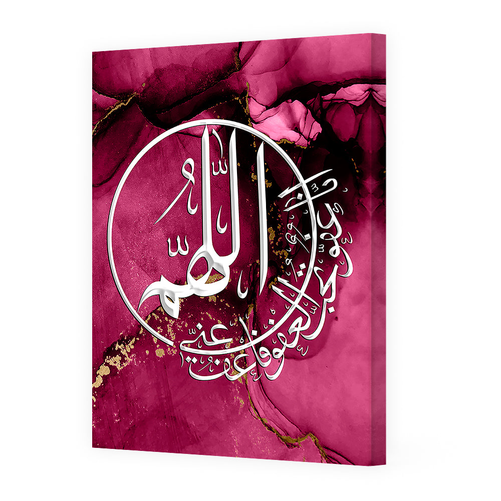 Calligraphie élégante sur fond rose vibrant, rehaussée de touches dorées.