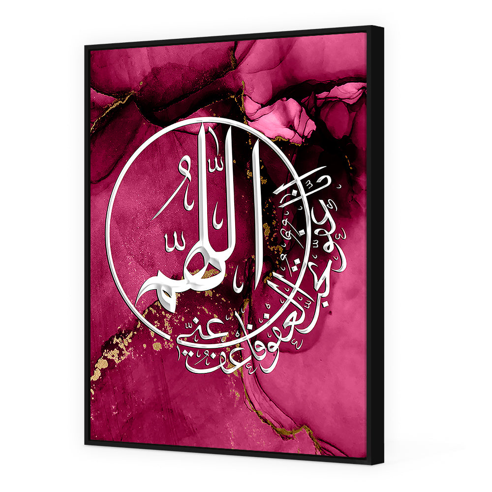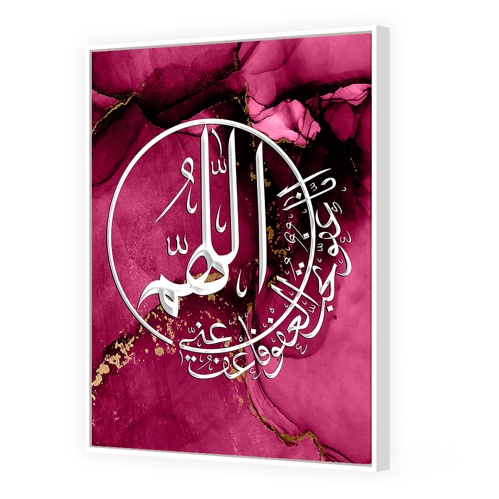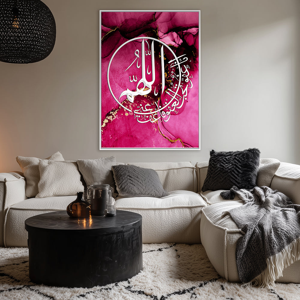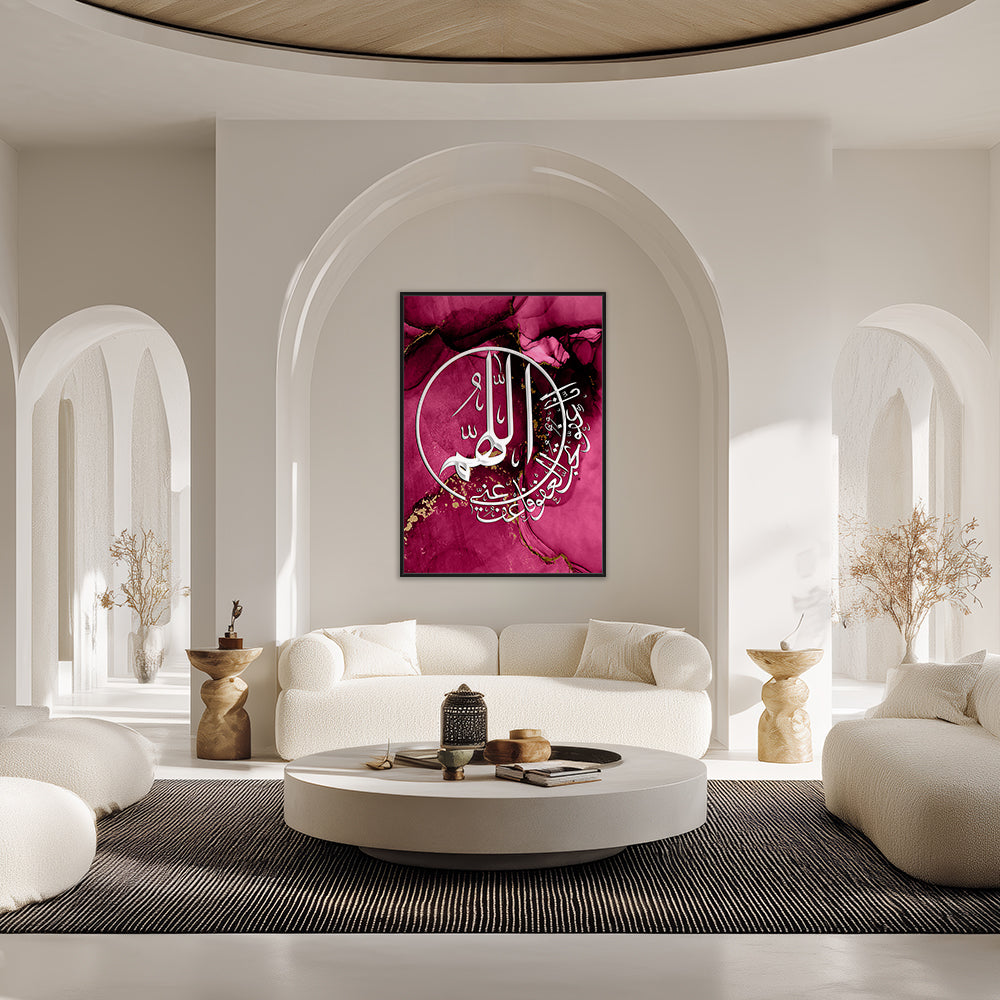 Calligraphie élégante sur fond rose vibrant, rehaussée de touches dorées.