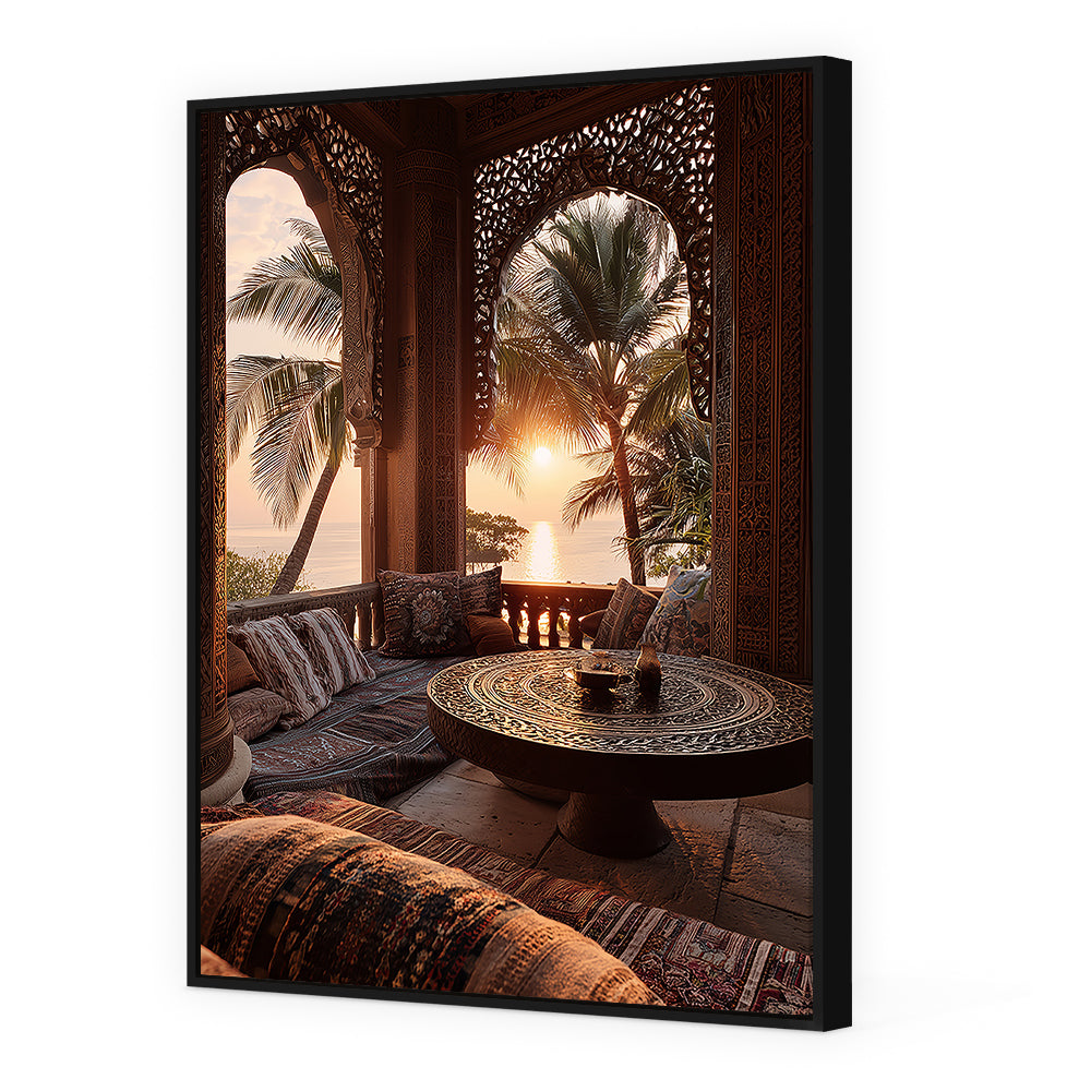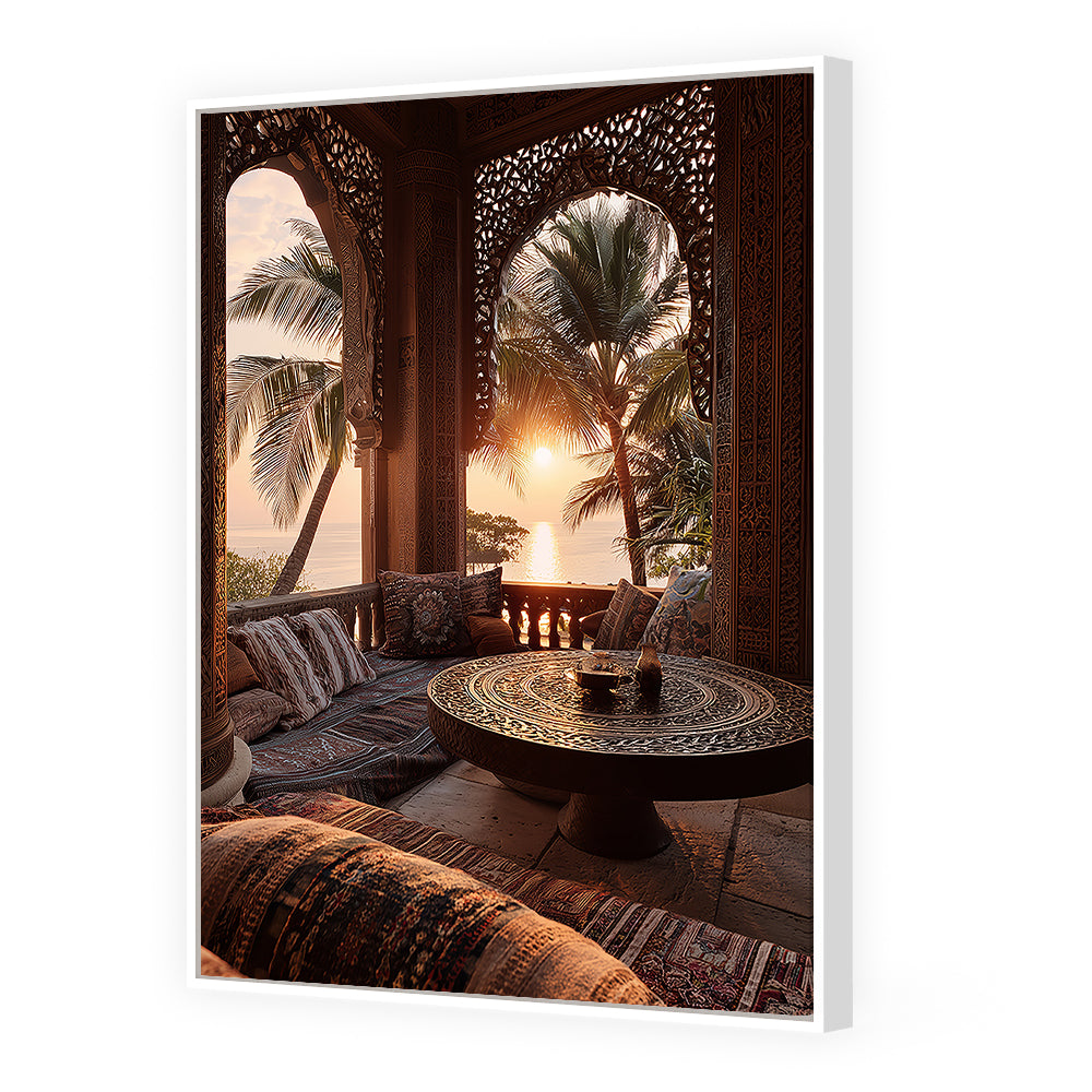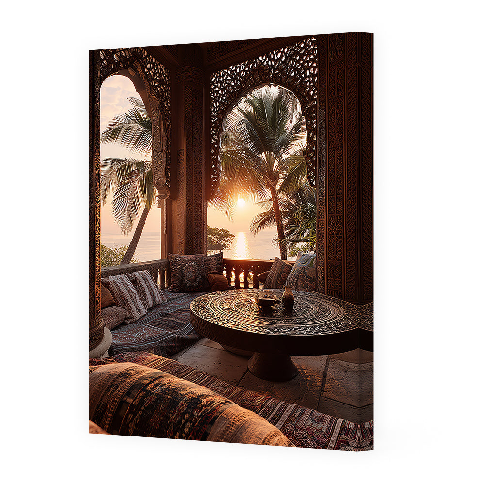 Évadez-vous dans un havre oriental avec vue sur un coucher de soleil tropical apaisant.