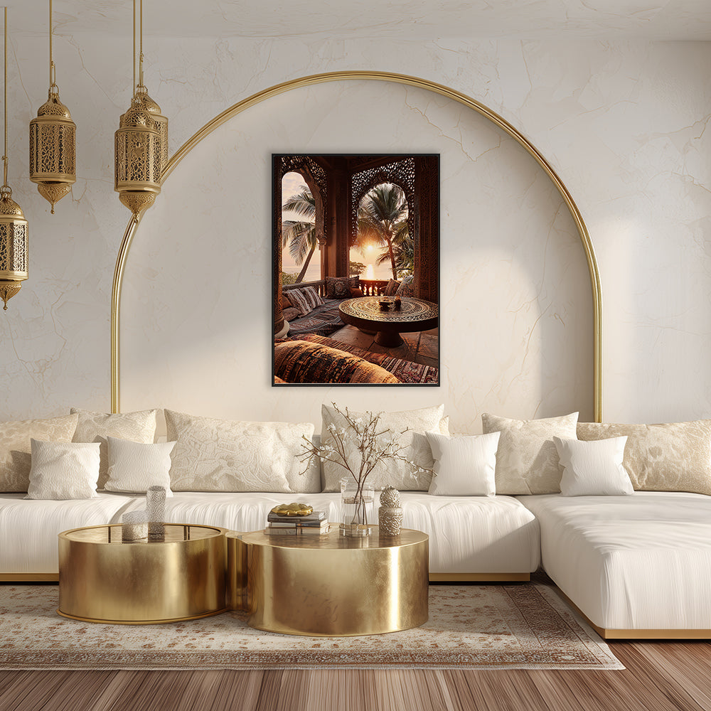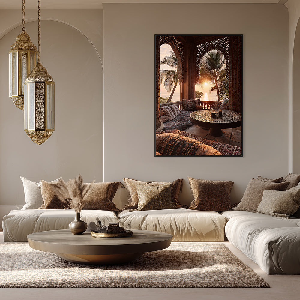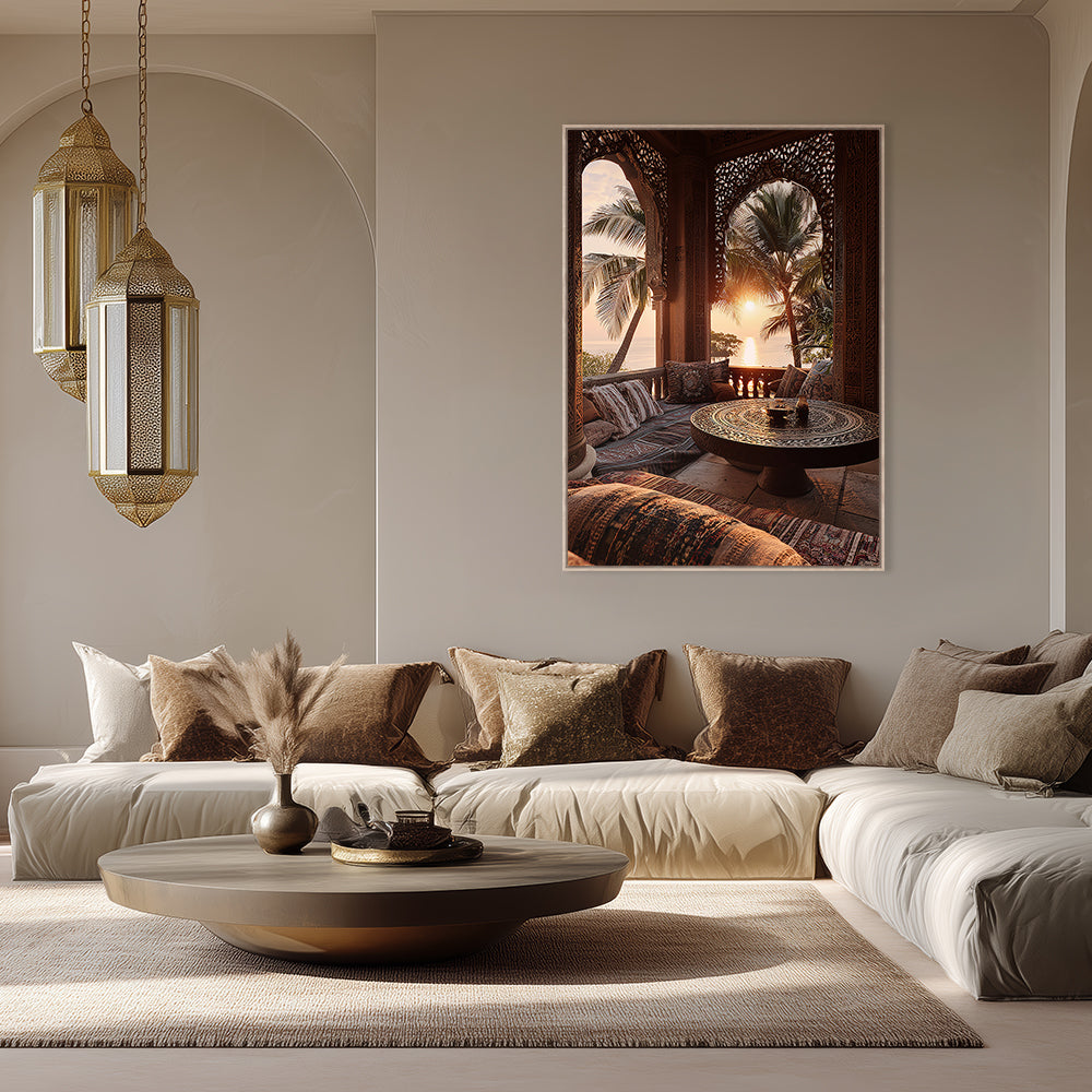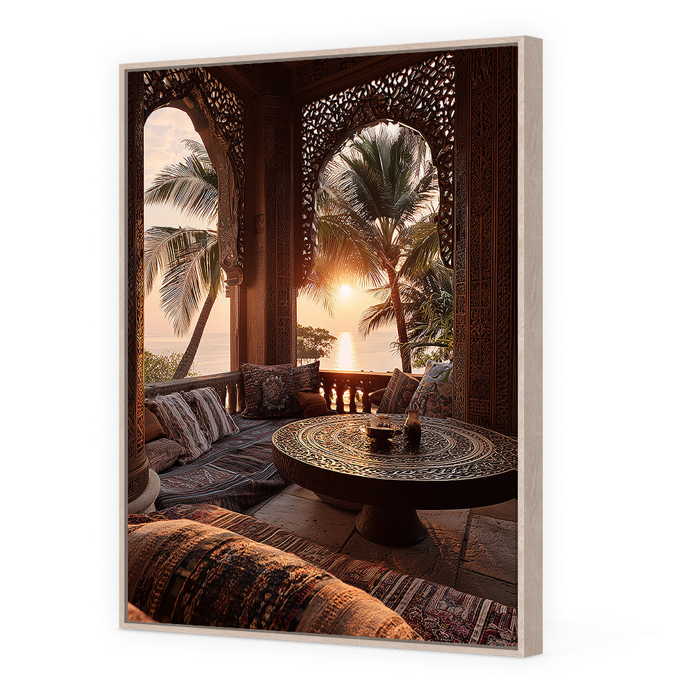 Évadez-vous dans un havre oriental avec vue sur un coucher de soleil tropical apaisant.