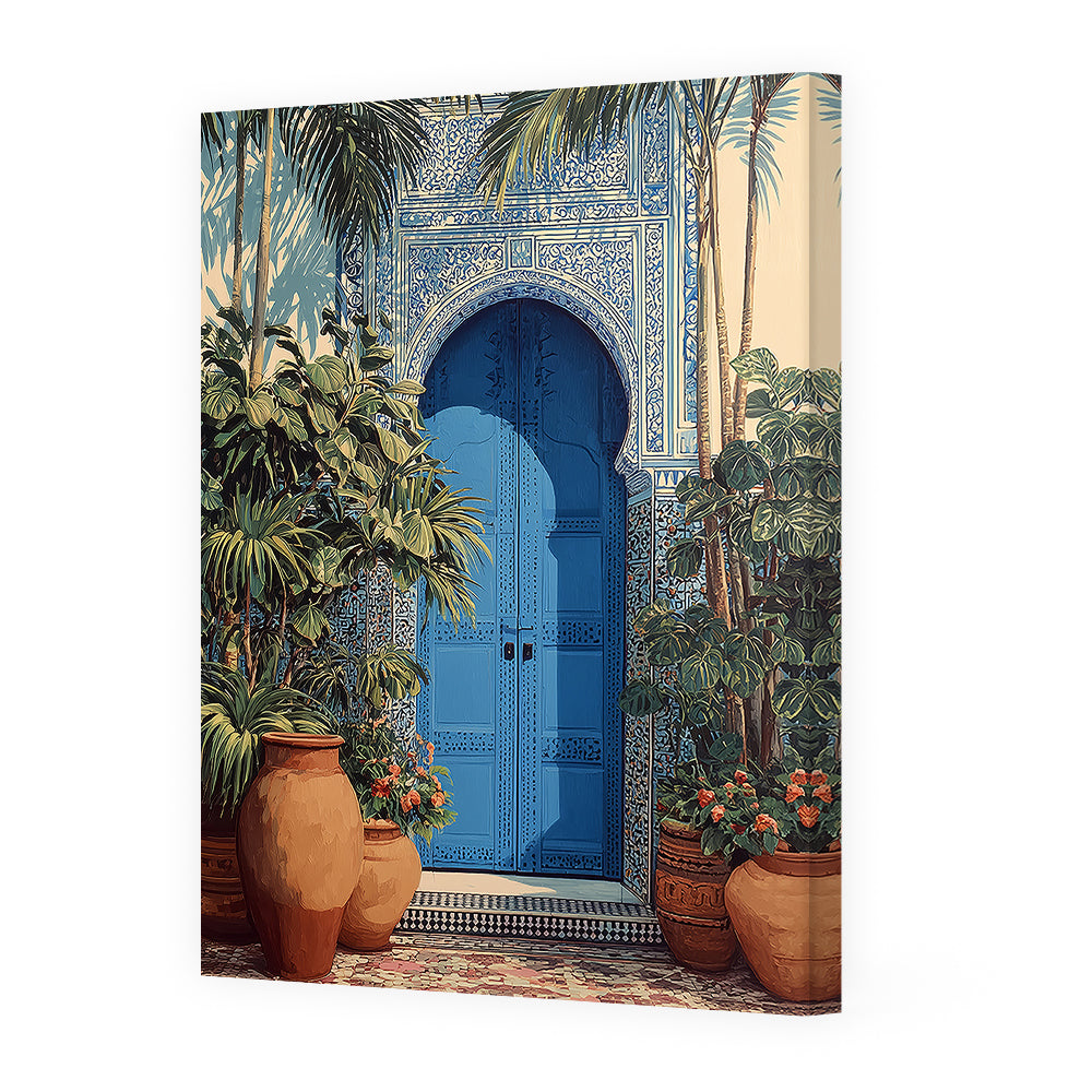 Évadez-vous vers un jardin secret avec ce portail orné de motifs exotiques et végétation luxuriante.
