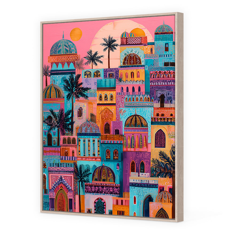 Une ville vibrante aux couleurs éclatantes, mêlant architecture et nature dans un style enchanteur.