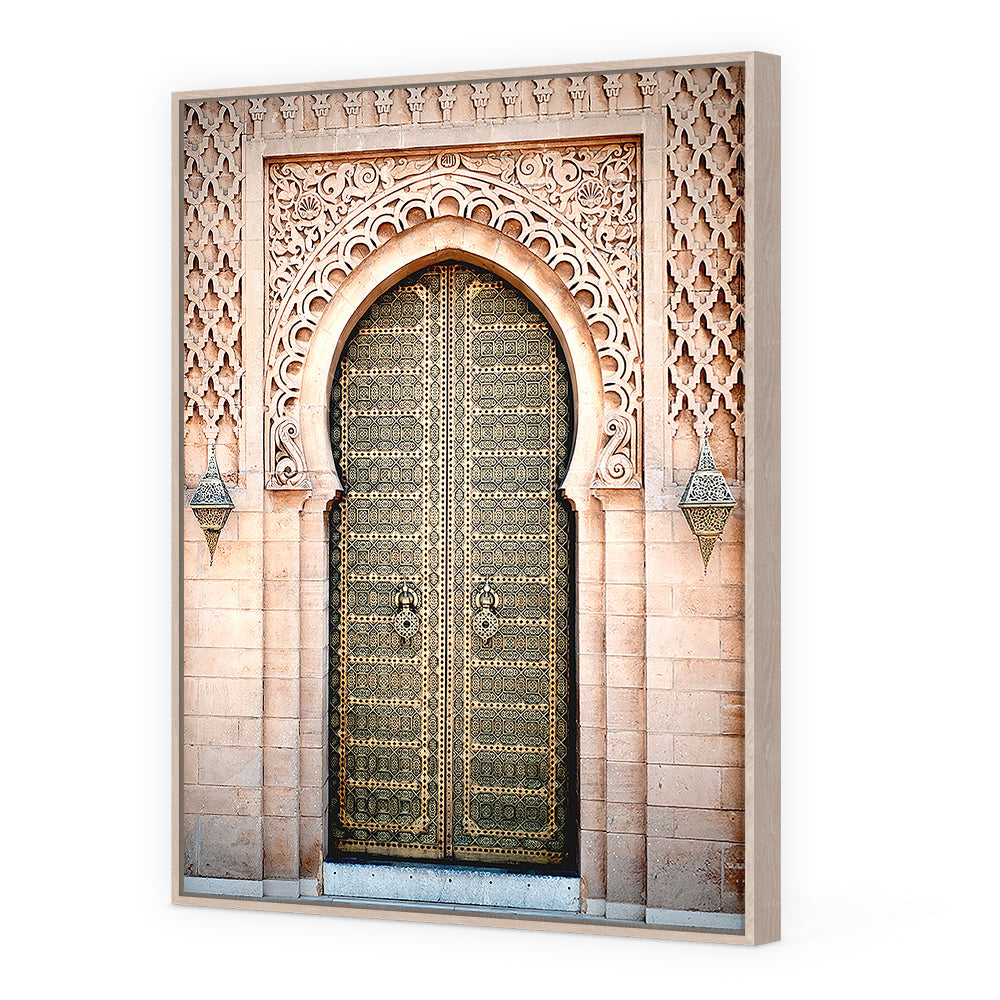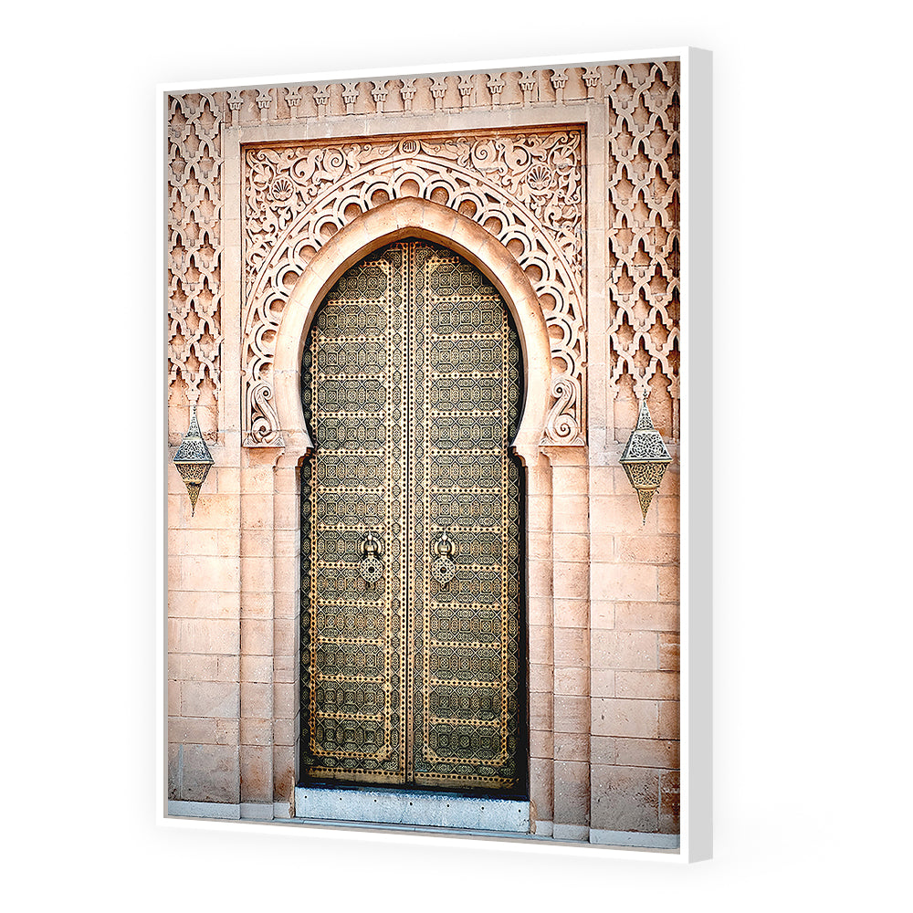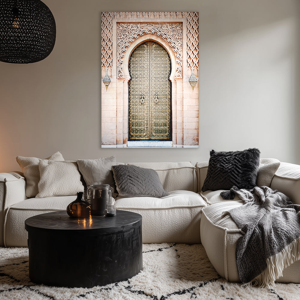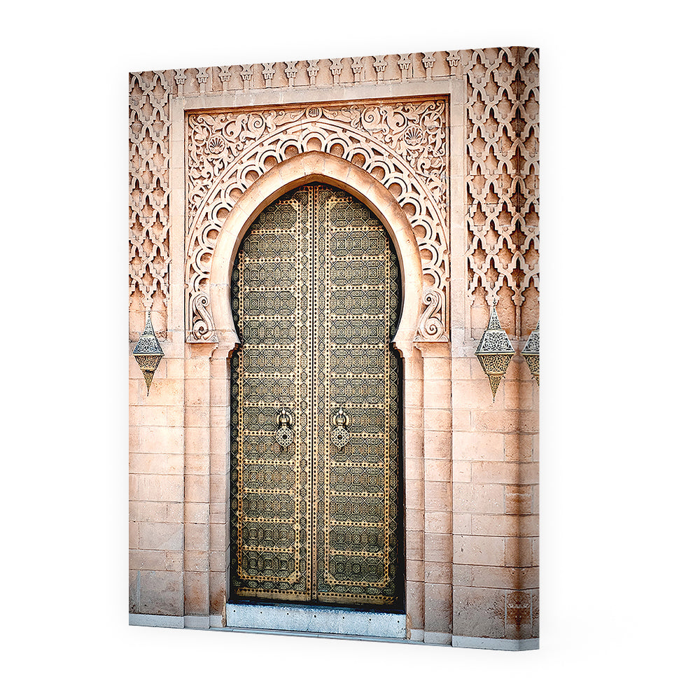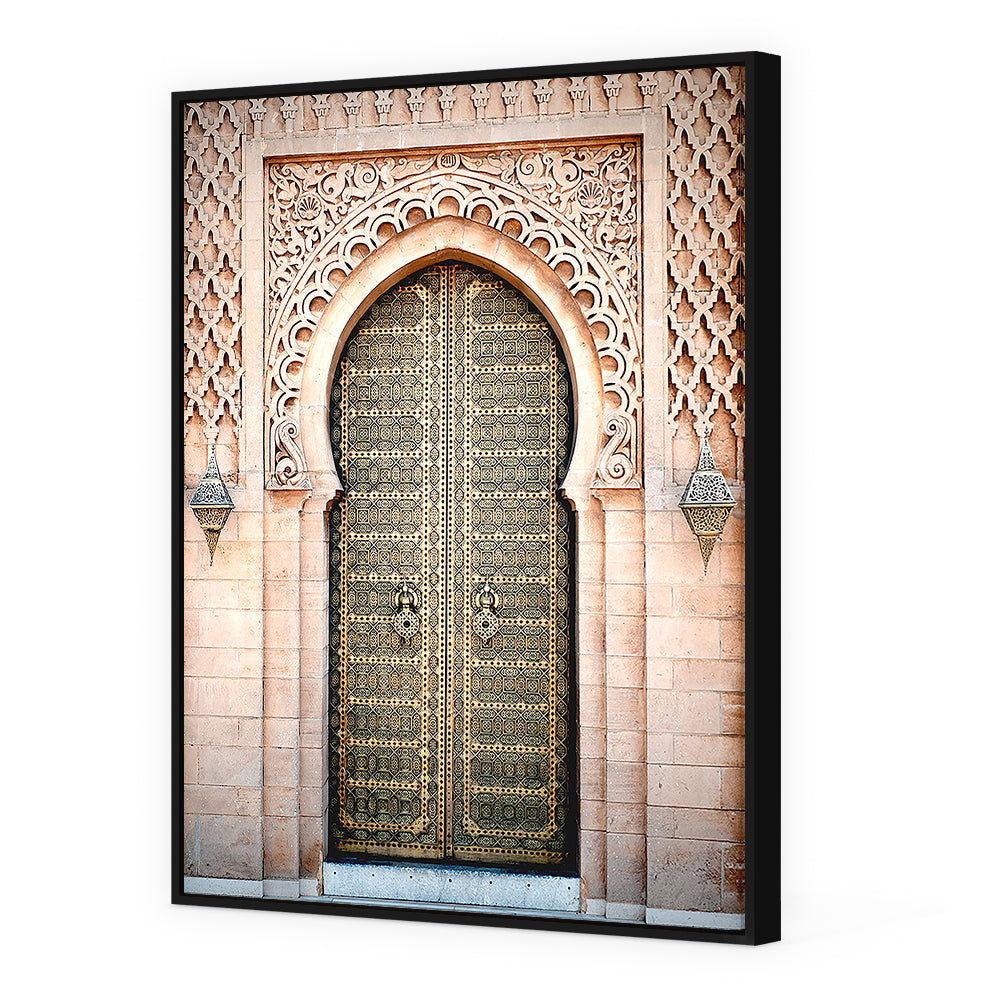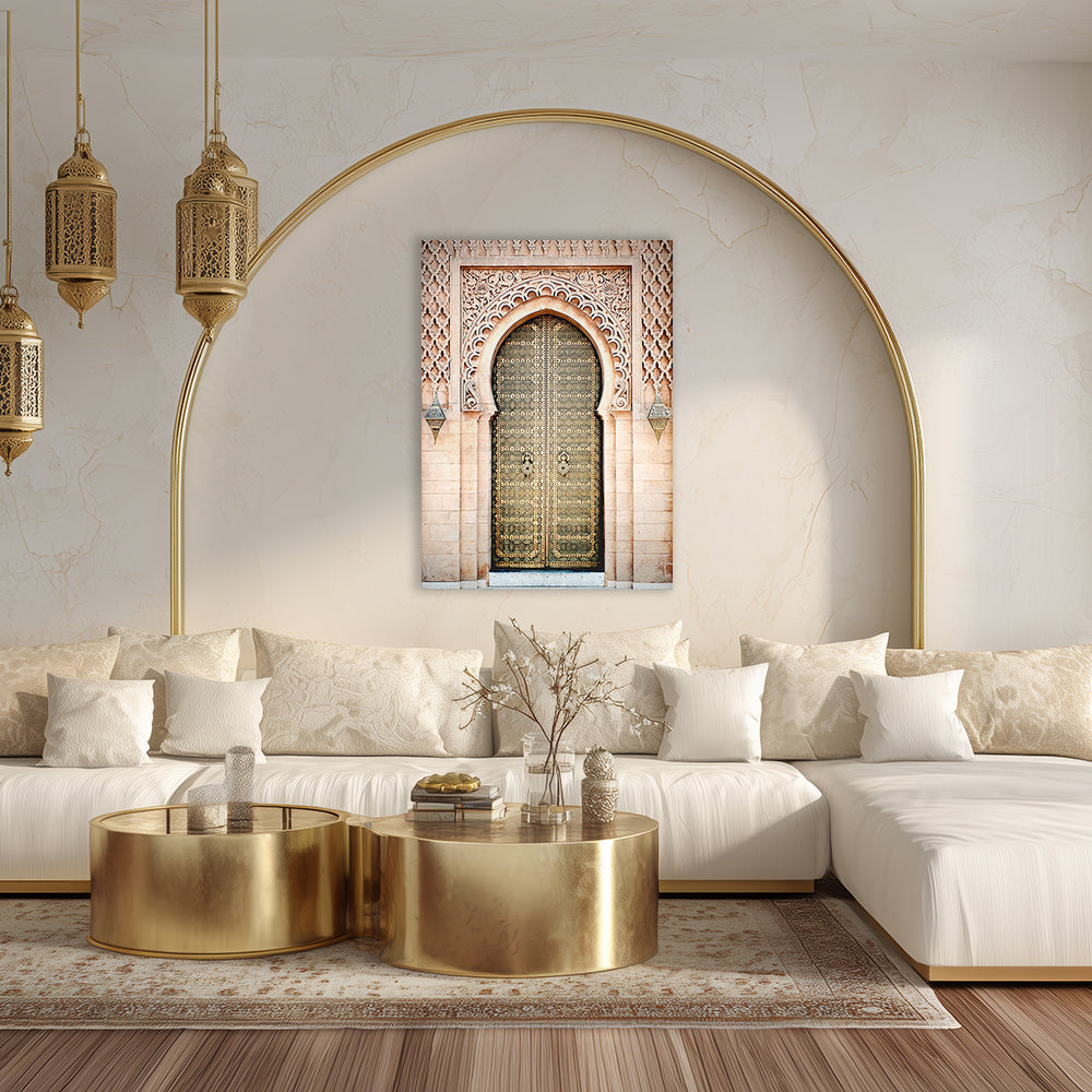 Porte ornée d'arabesques dorées, évoquant l'élégance et la spiritualité de l'art islamique.