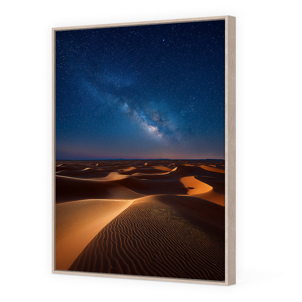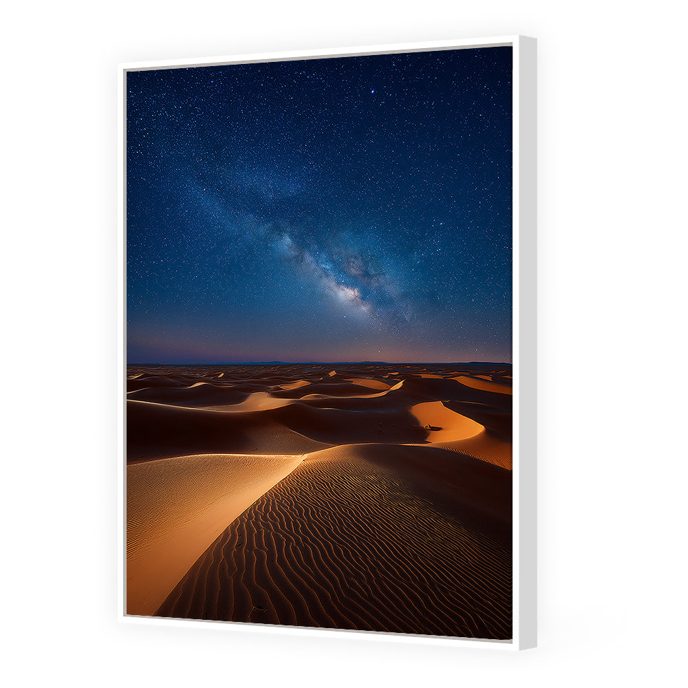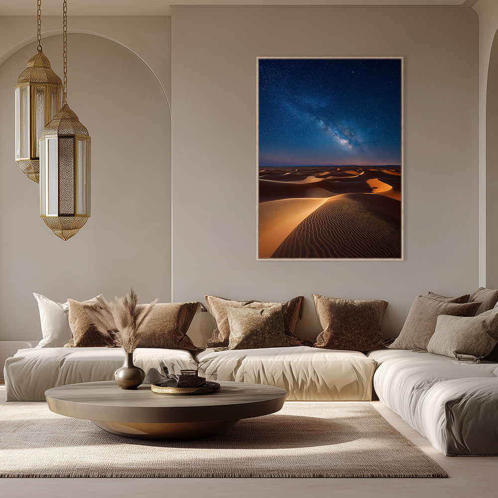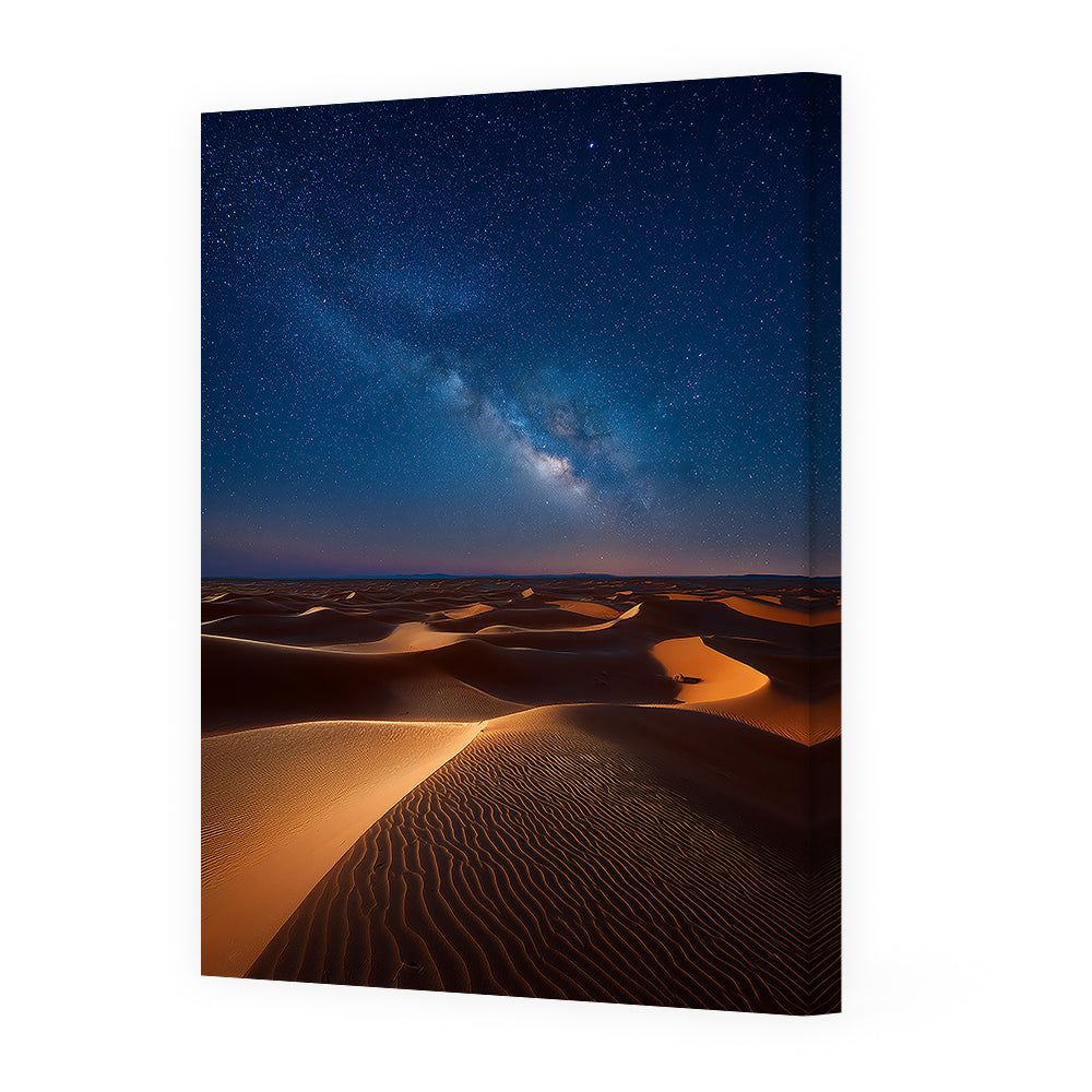 Admirez la beauté céleste au-dessus des dunes ondulantes sous un ciel étoilé.