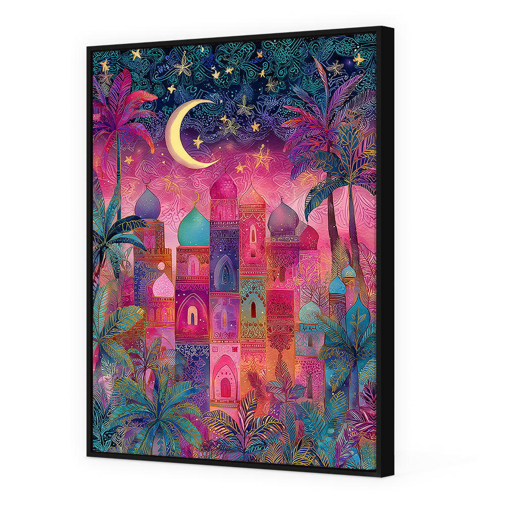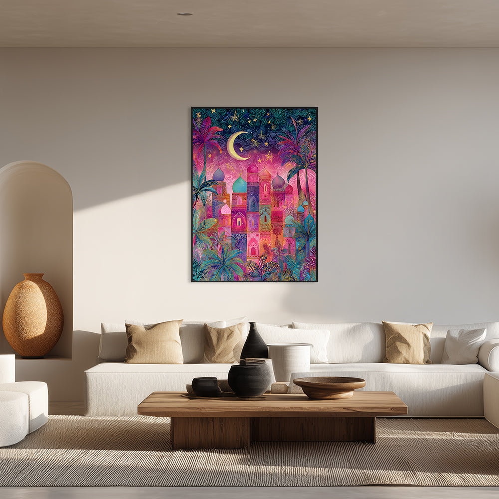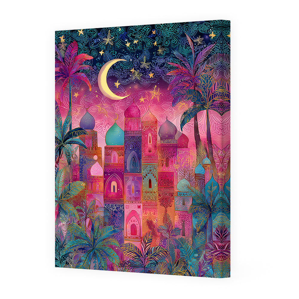 Explorez un monde de couleurs vives et motifs orientaux sous un ciel étoilé enchanteur.