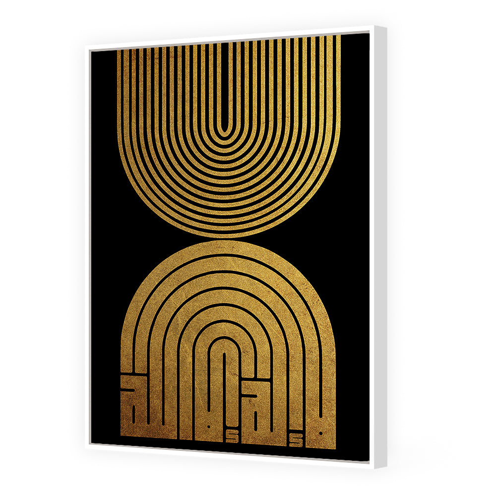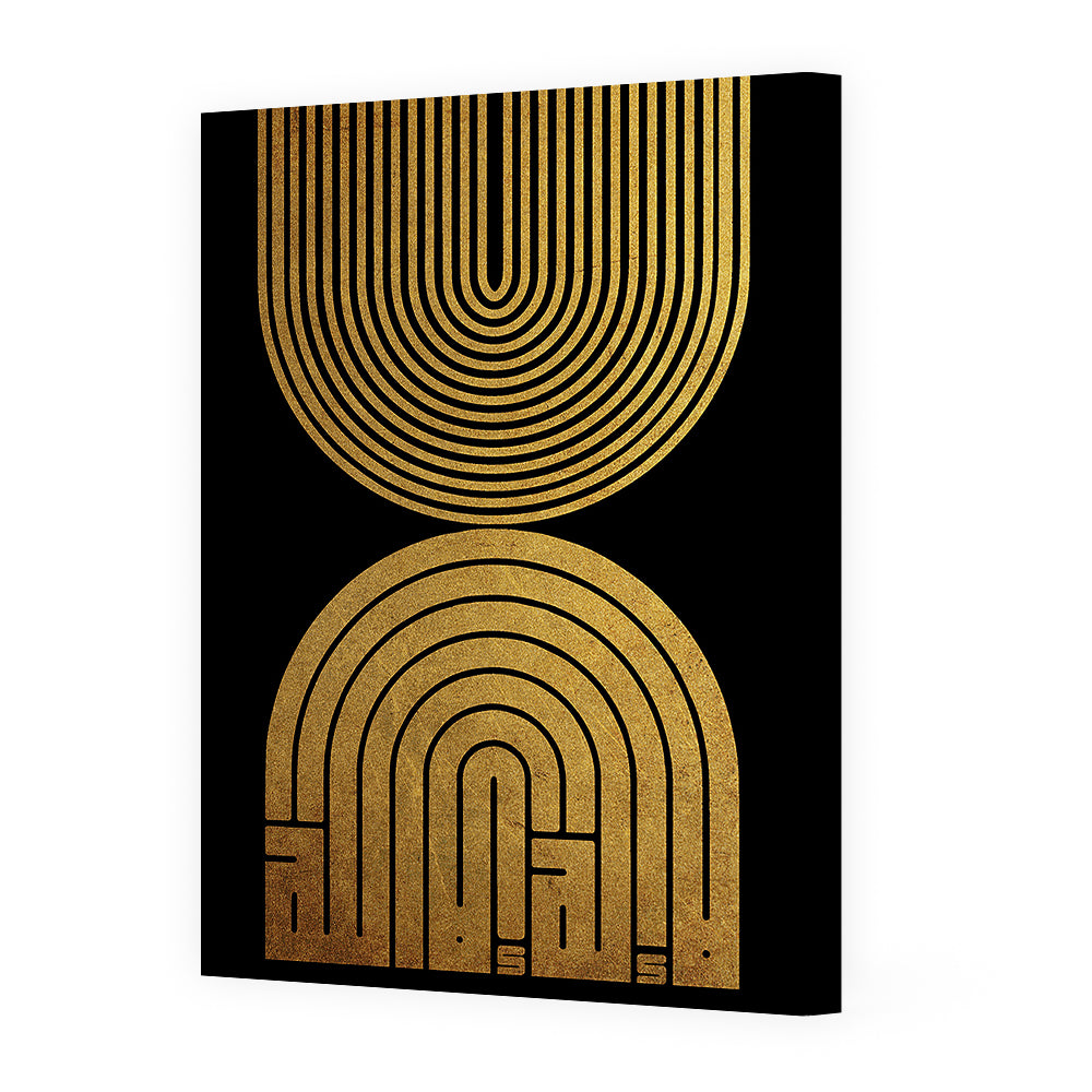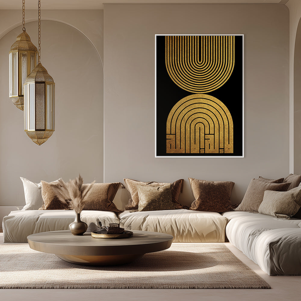 Élégante fusion de calligraphie et motifs dorés sur fond noir, captivant et moderne.