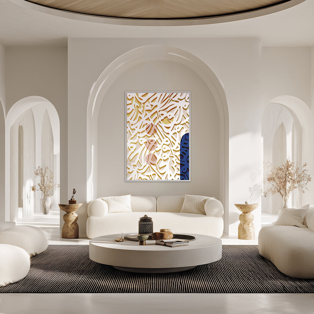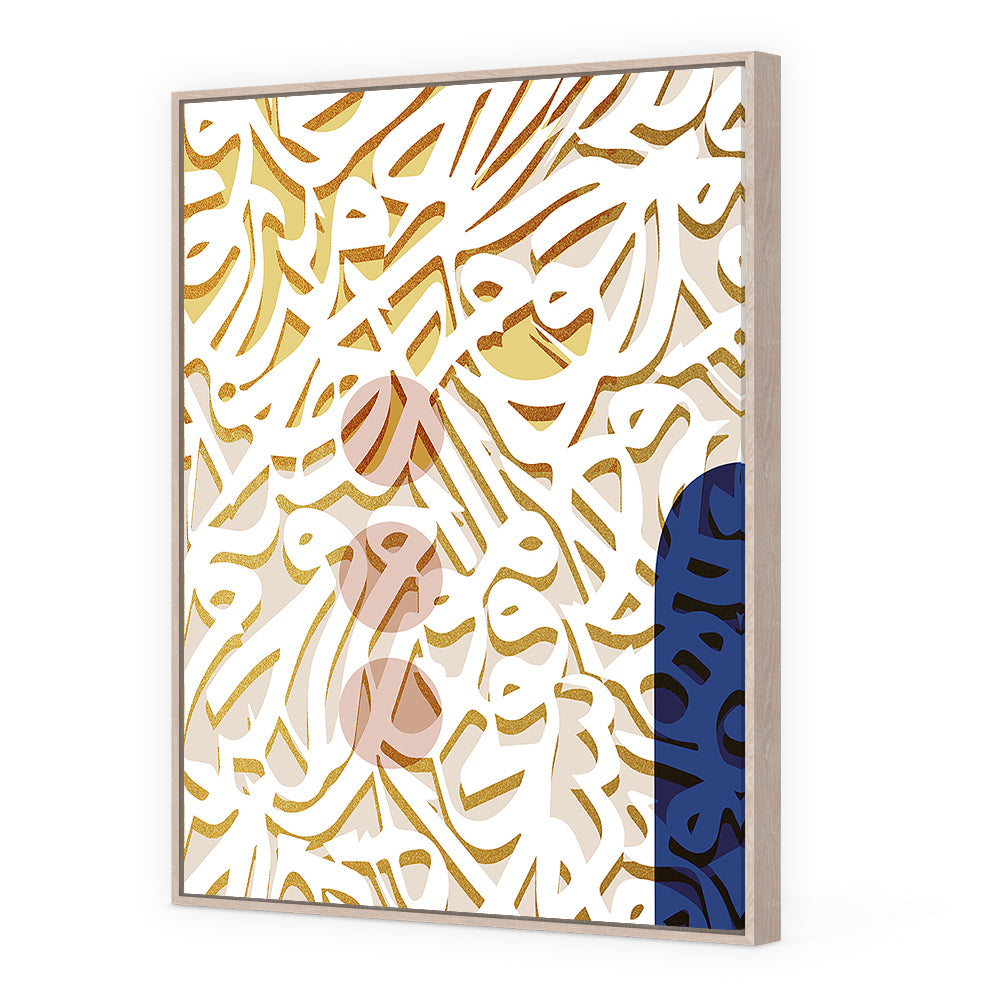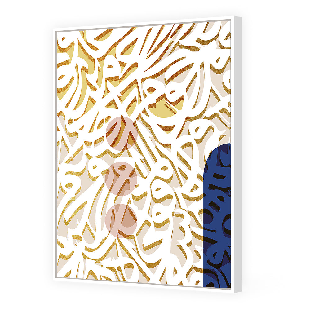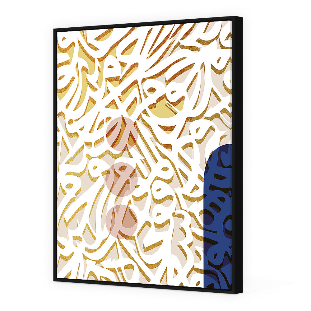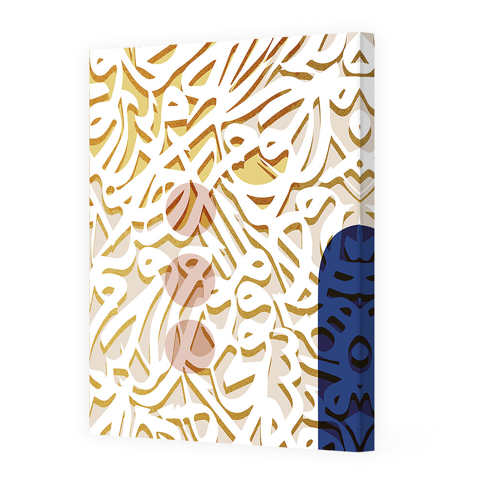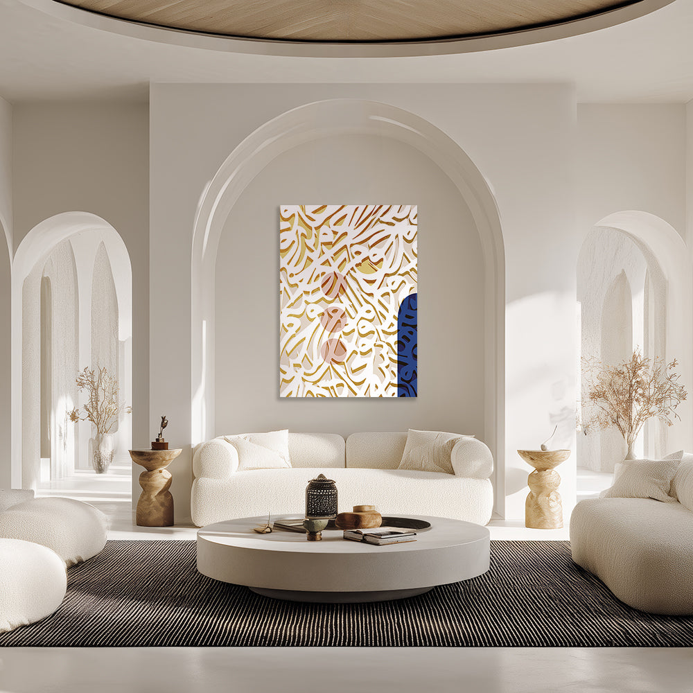 Calligraphie dorée sur fond abstrait, fusionnant tradition et modernité avec élégance.