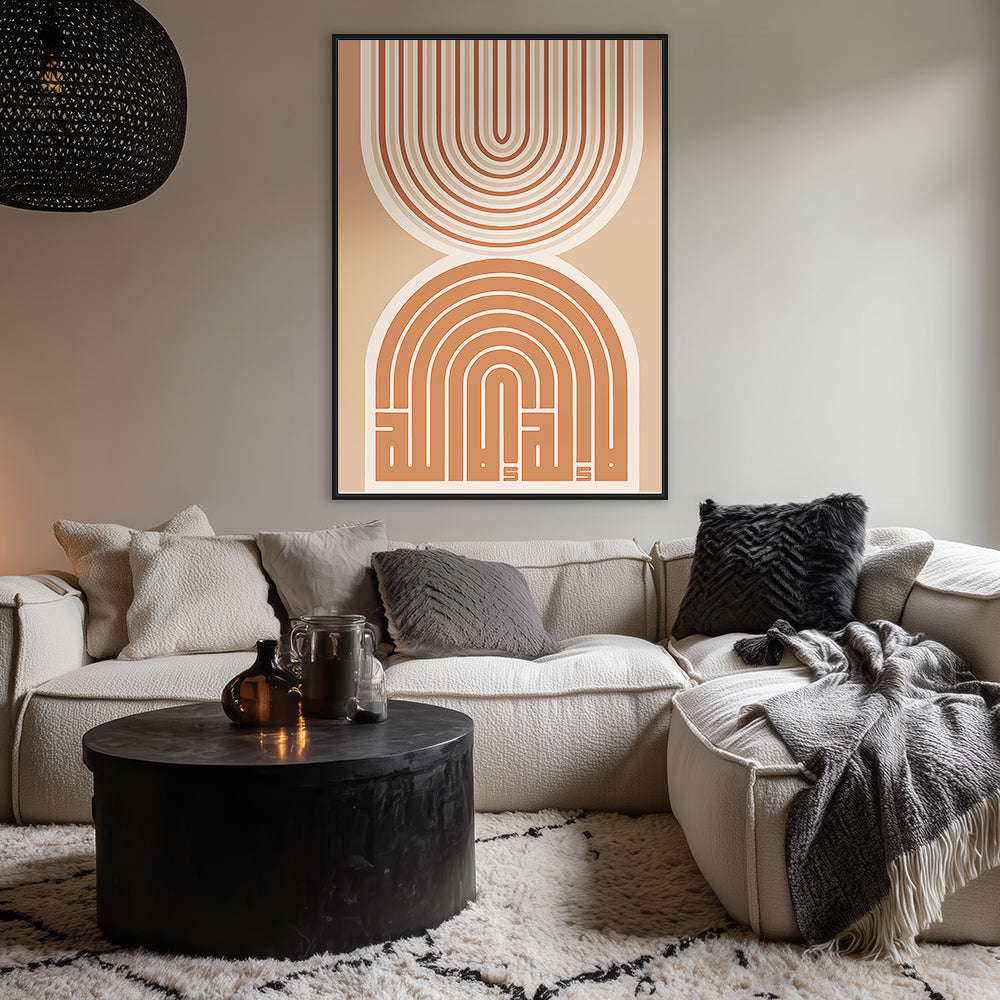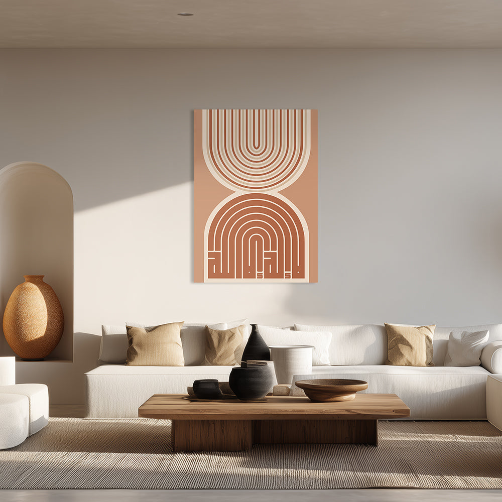 Design géométrique captivant avec des lignes courbes et des tons terreux apaisants.