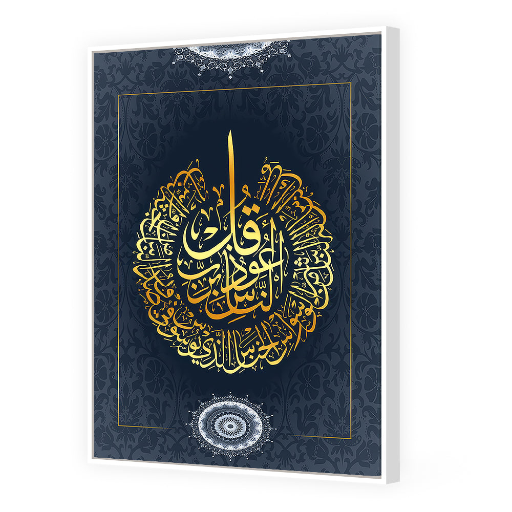 Calligraphie dorée sur fond bleu, fusionnant tradition et élégance pour un intérieur raffiné.