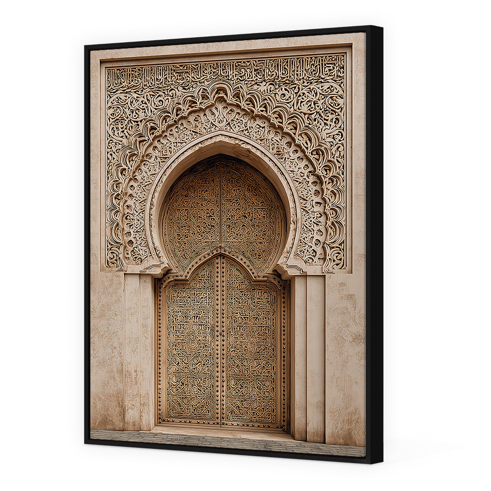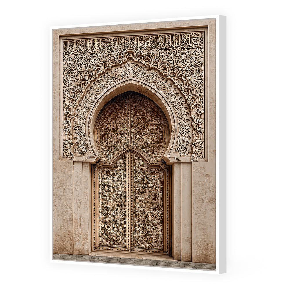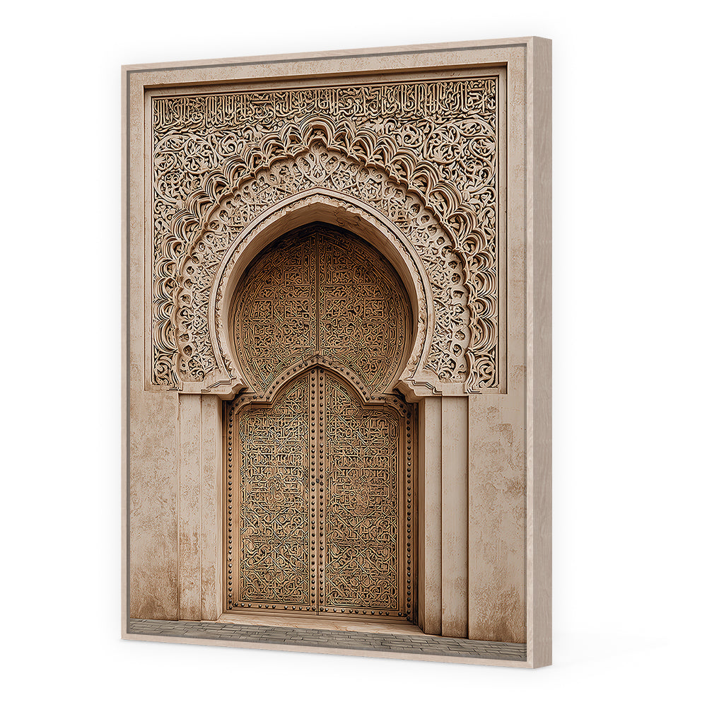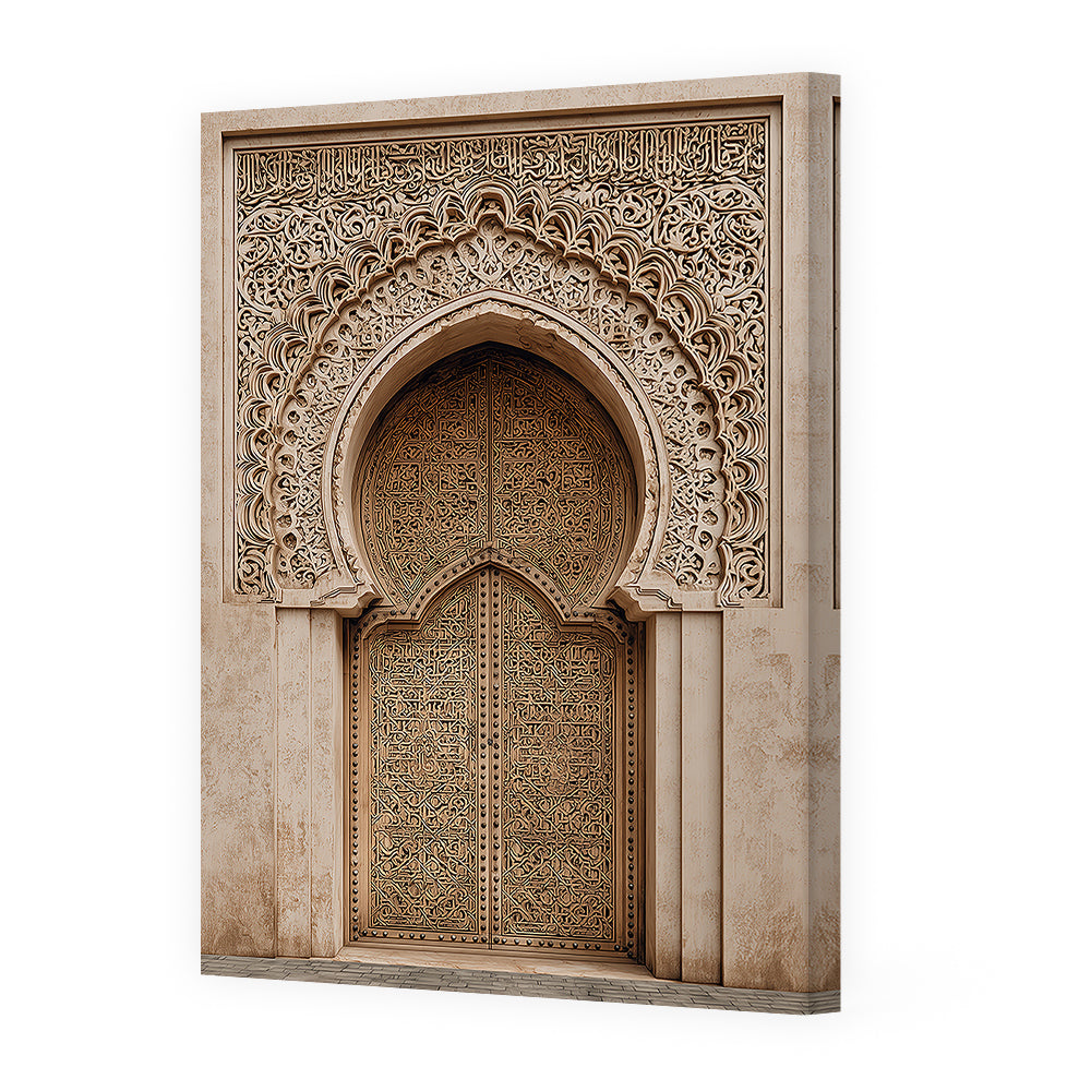 Magnifique portail orné de motifs arabesques, évoquant l'élégance de l'art islamique traditionnel.