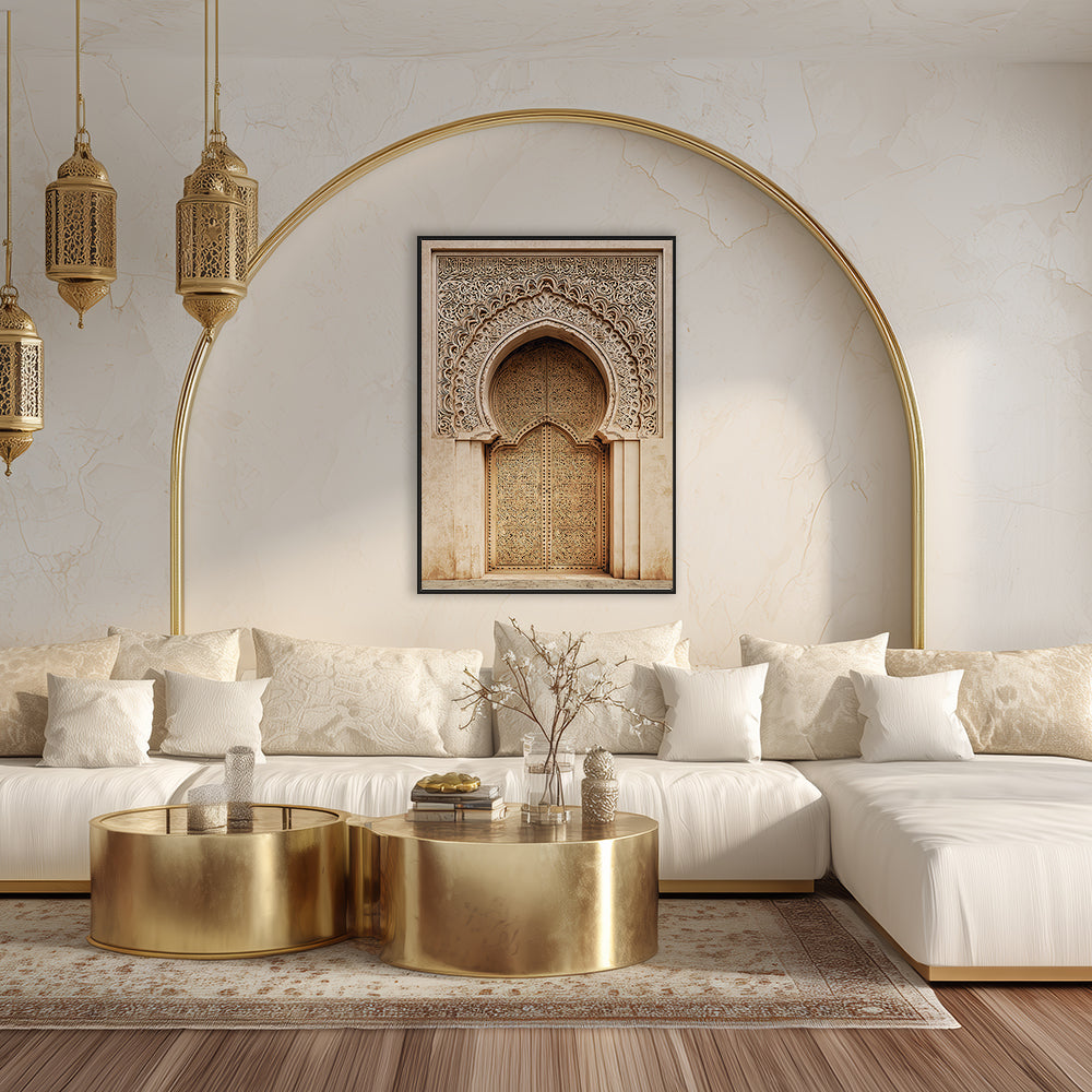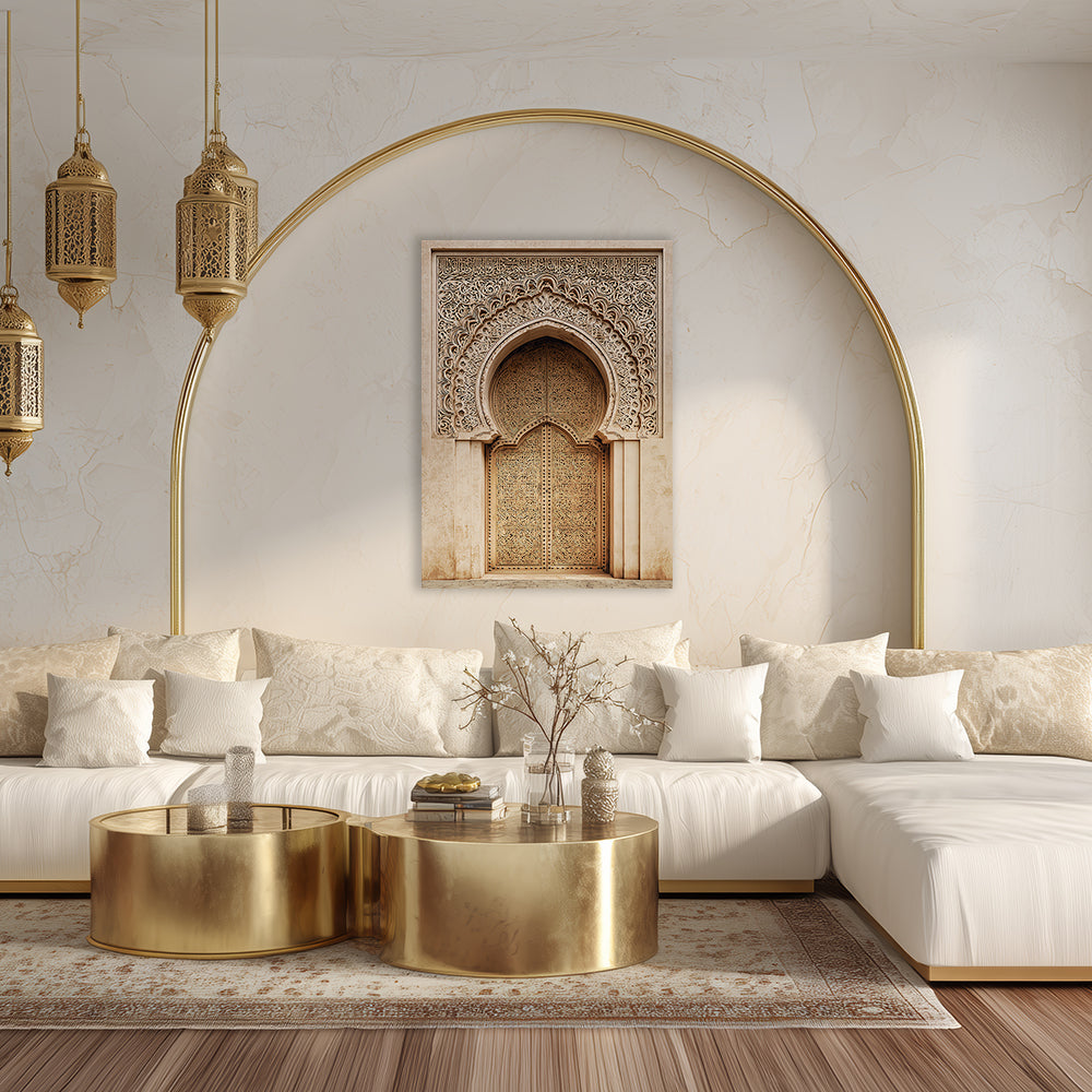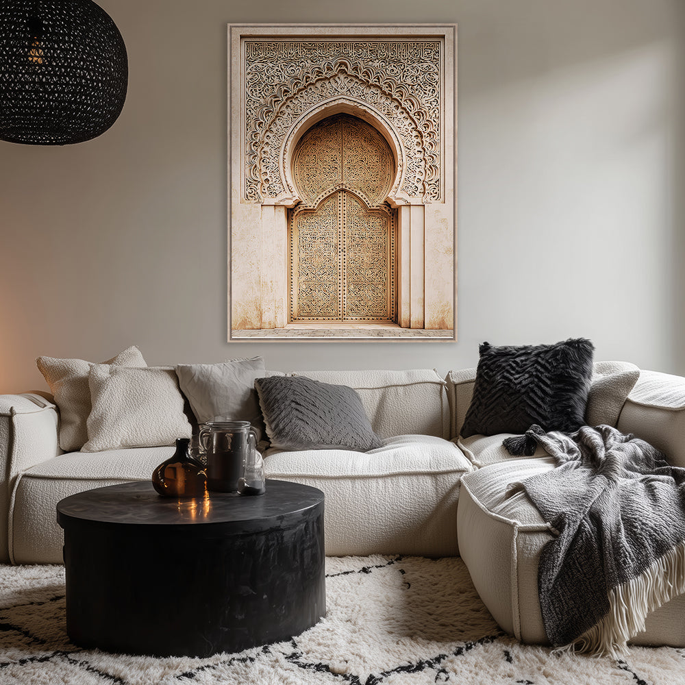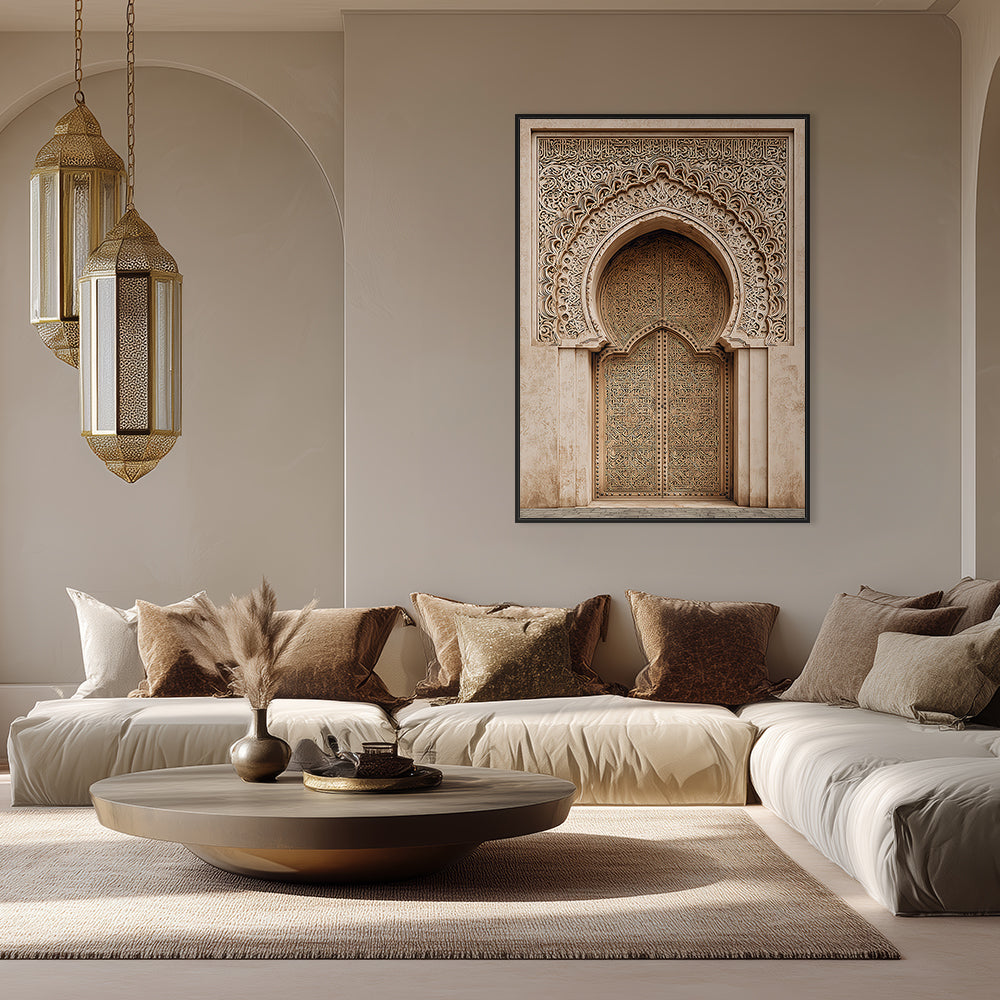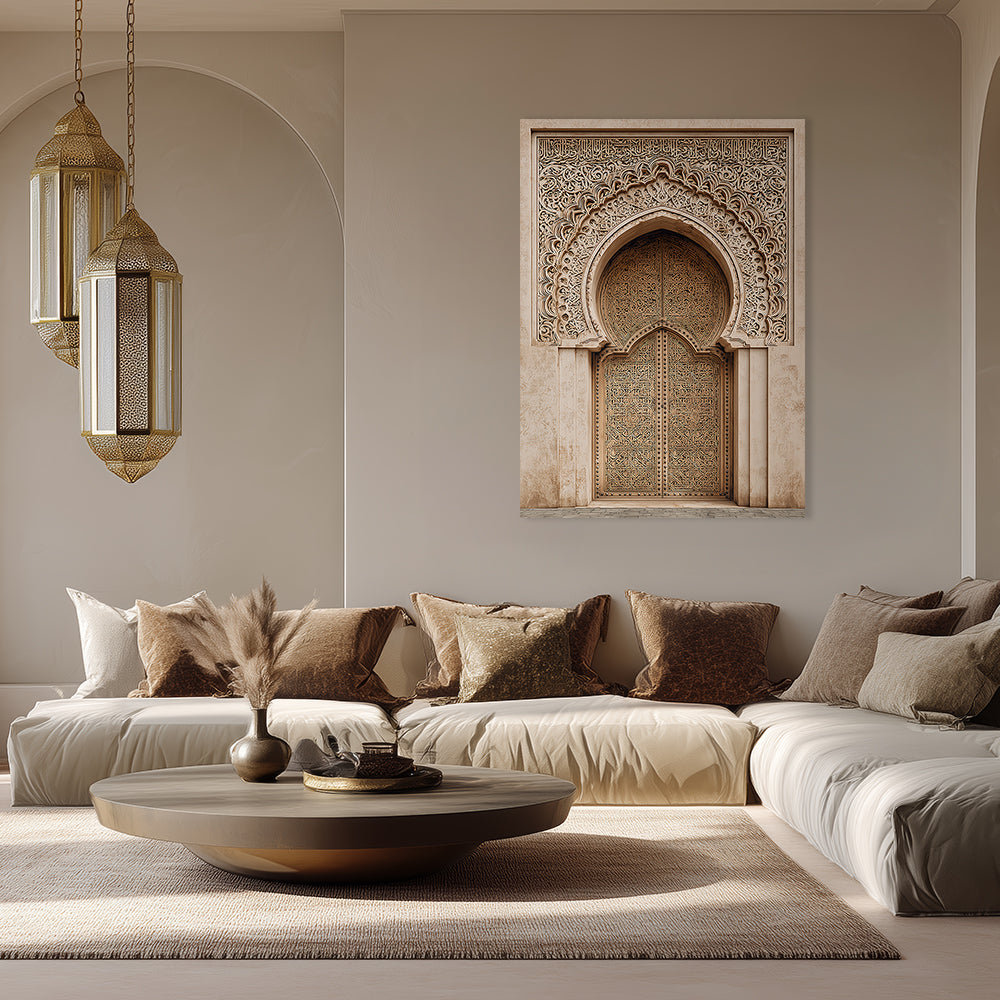 Magnifique portail orné de motifs arabesques, évoquant l'élégance de l'art islamique traditionnel.