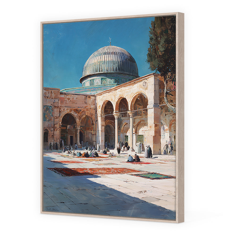 Scène captivante d'un lieu sacré baigné de lumière, évoquant spiritualité et tradition.