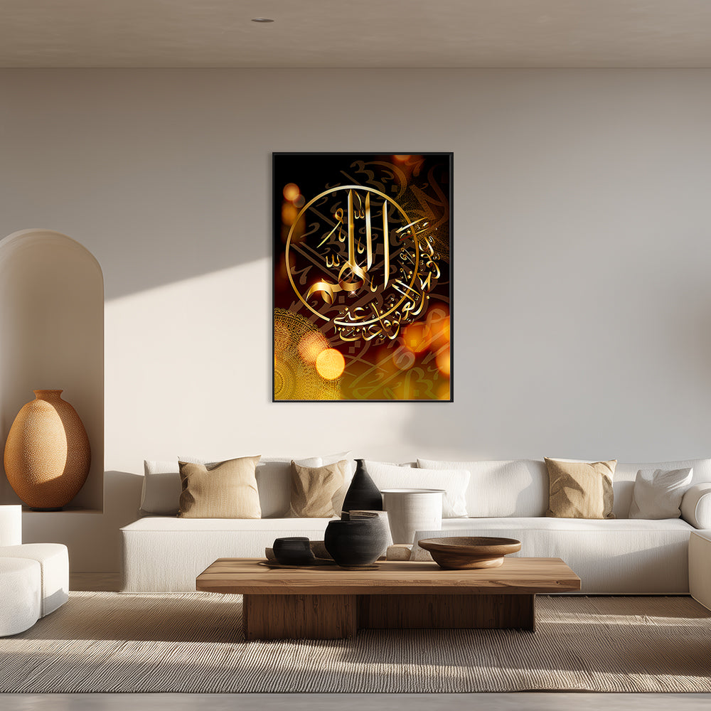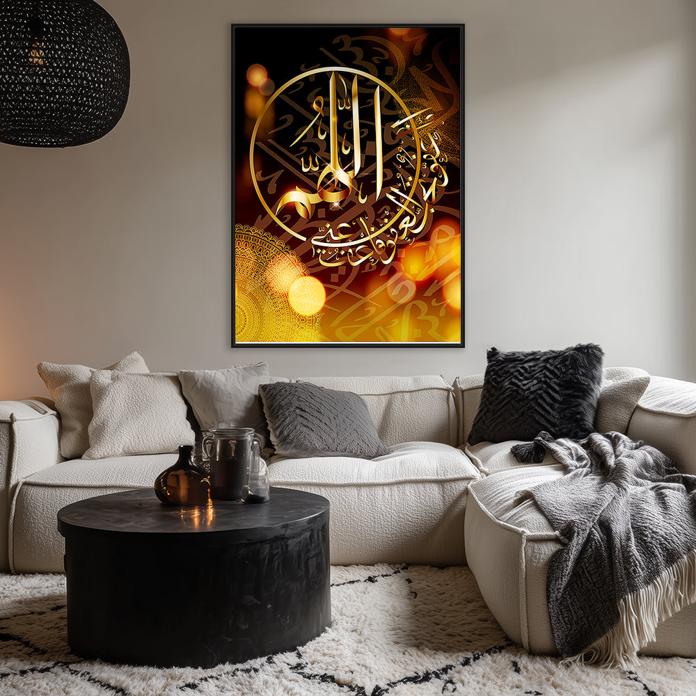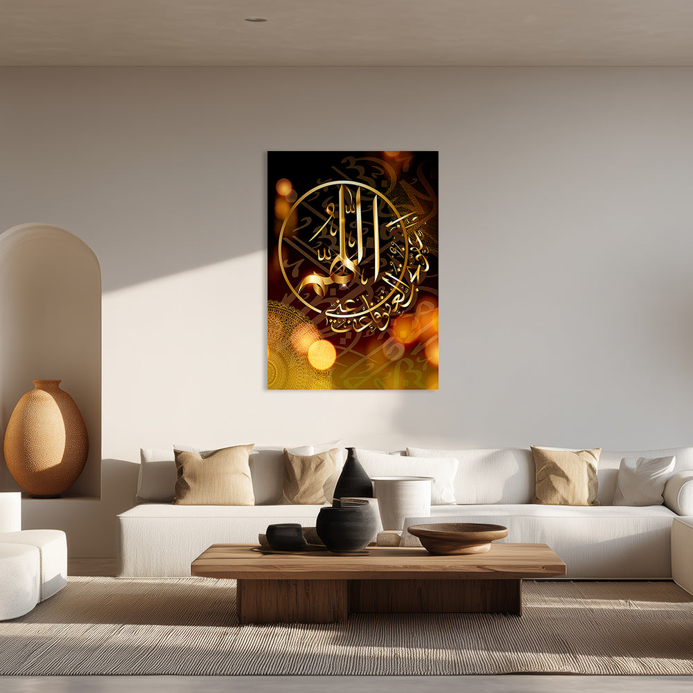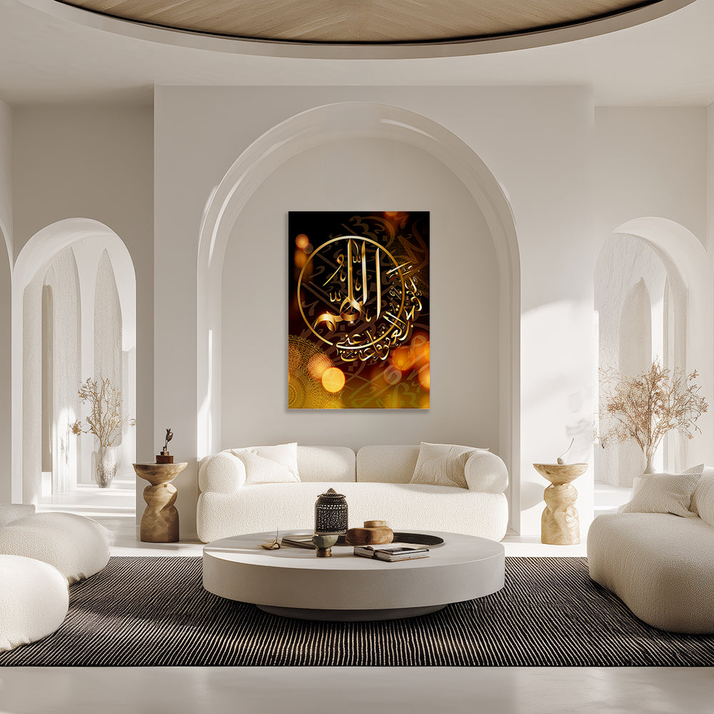 Calligraphie dorée sur fond sombre, évoquant une ambiance mystique et élégante.