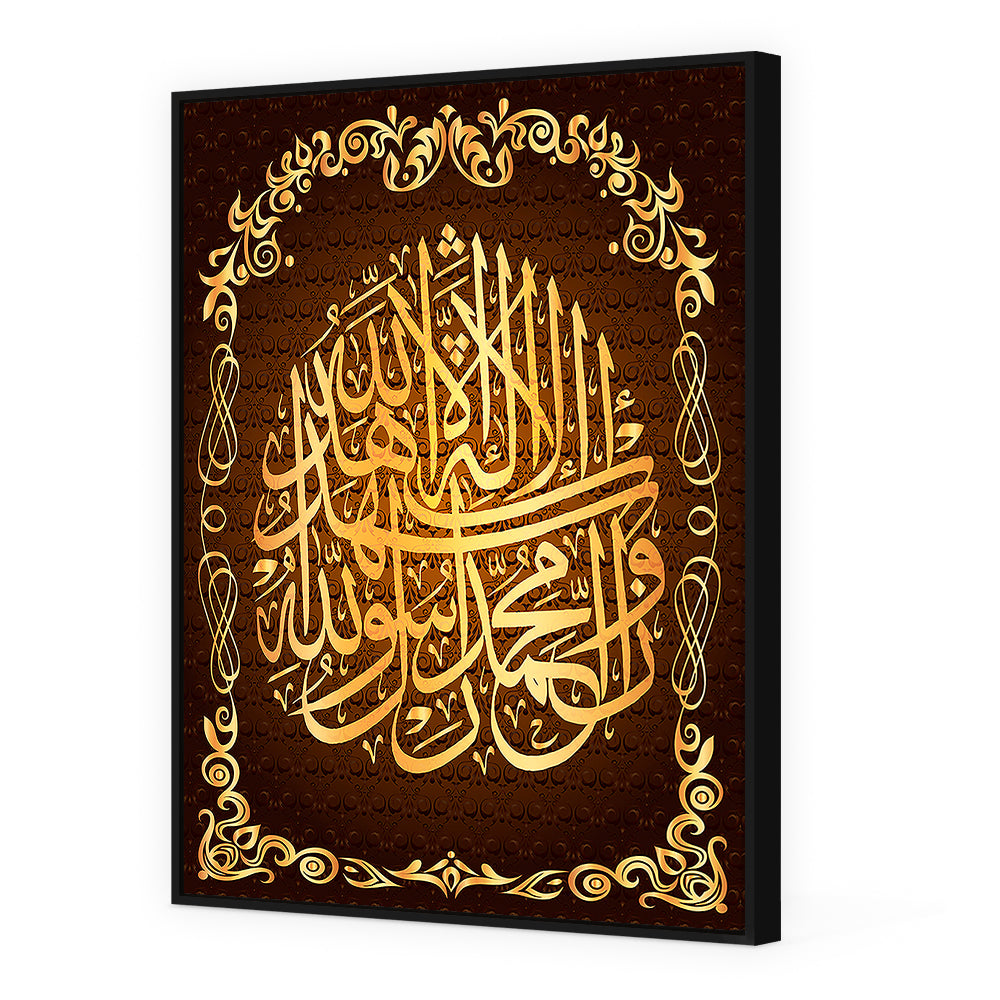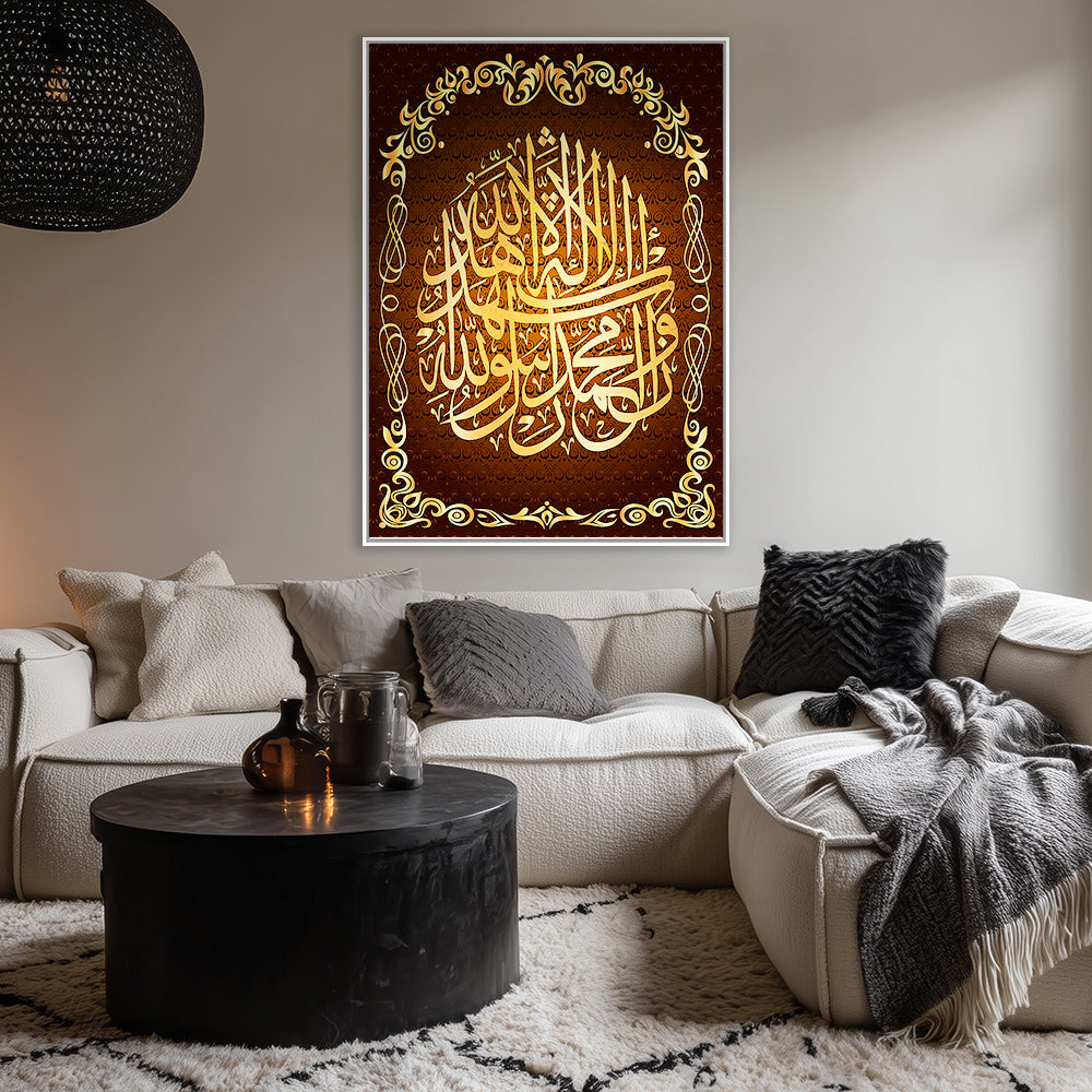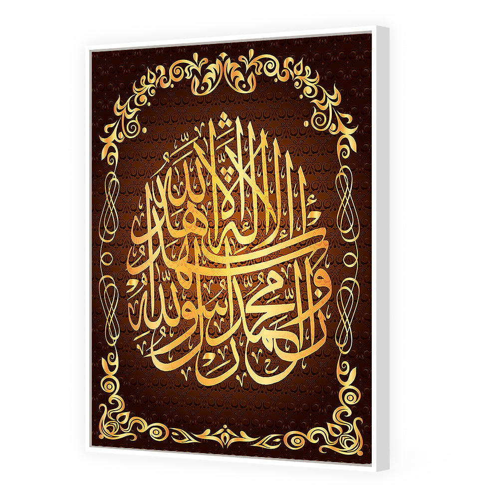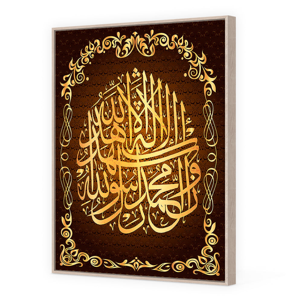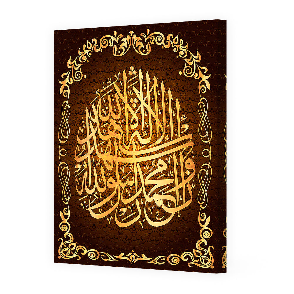 Calligraphie dorée sur fond marron, évoquant tradition et spiritualité.