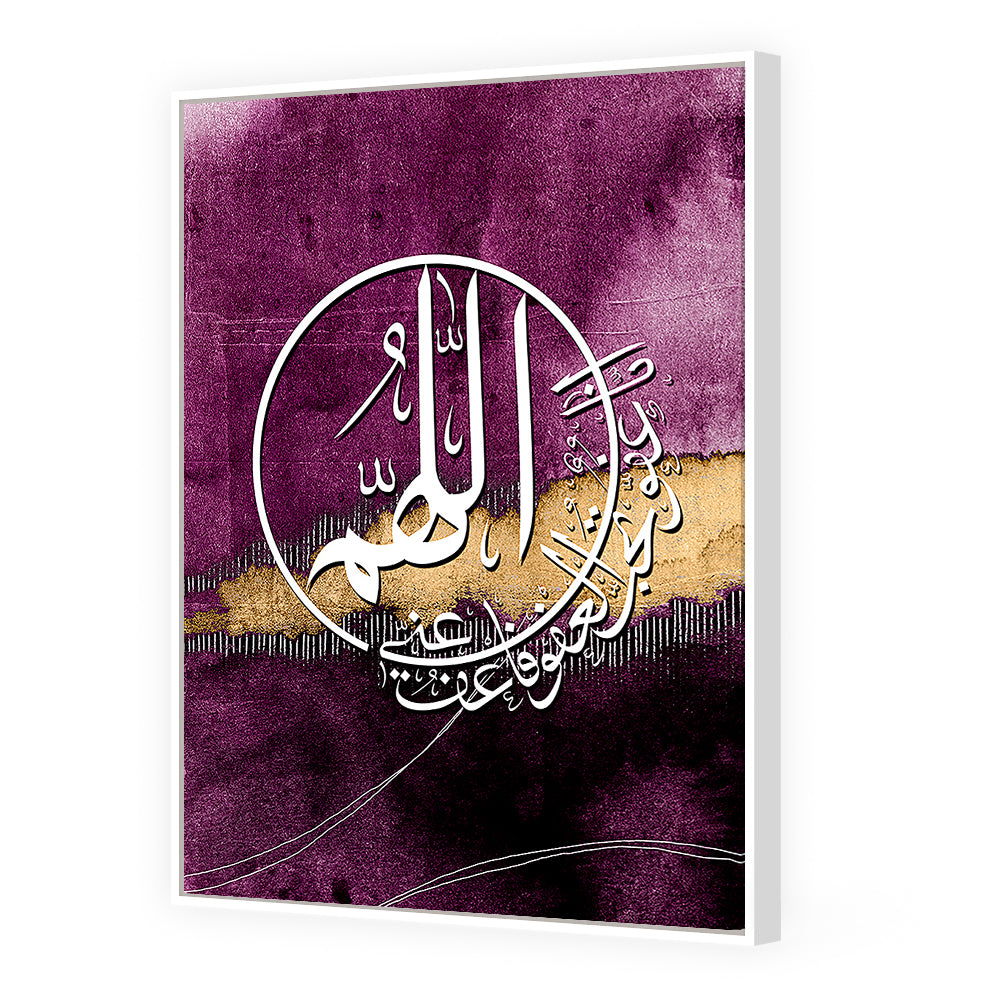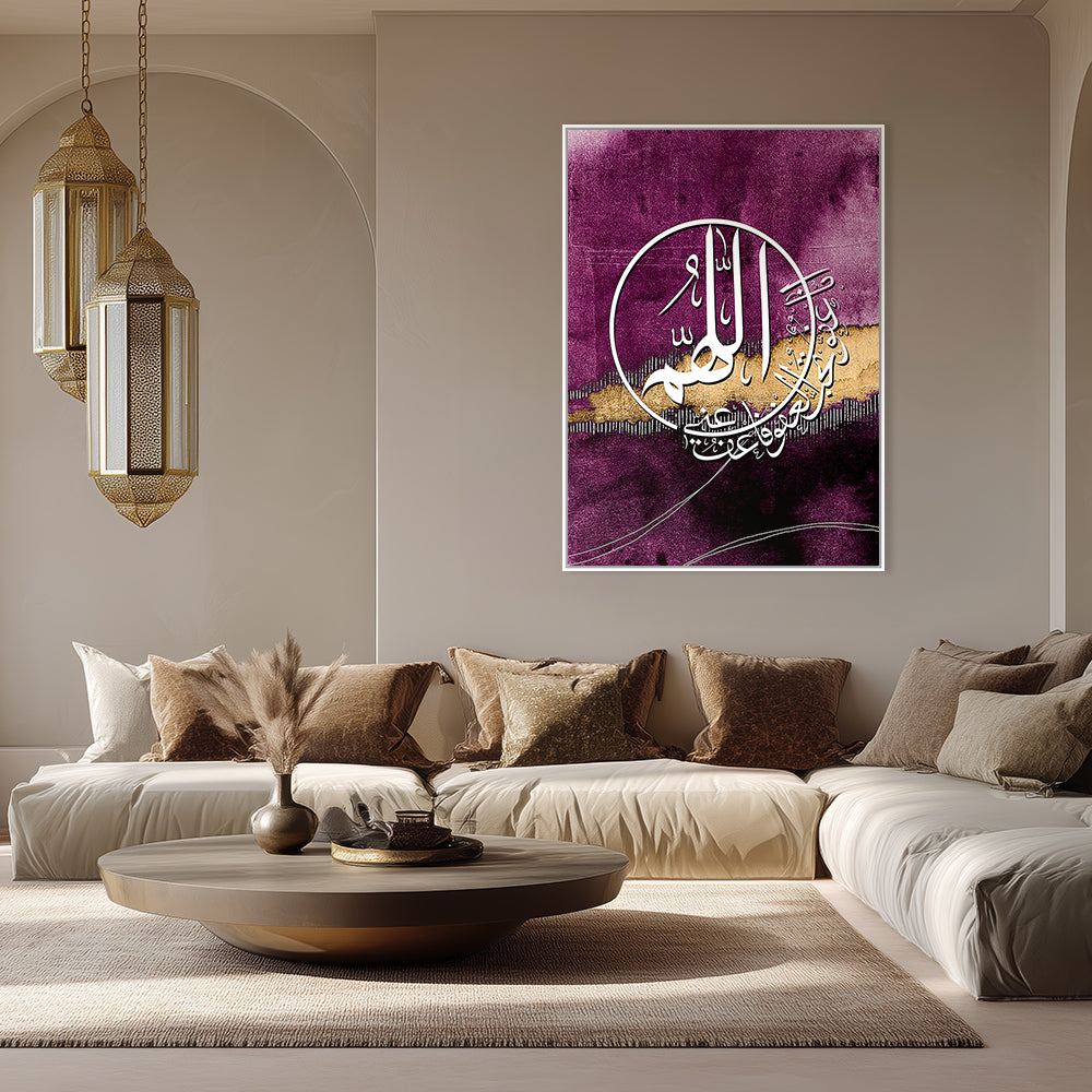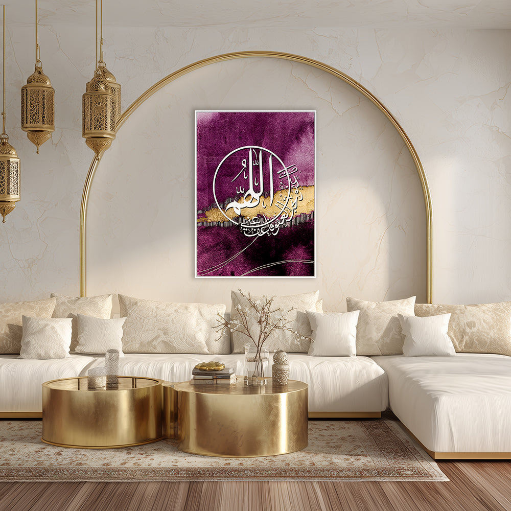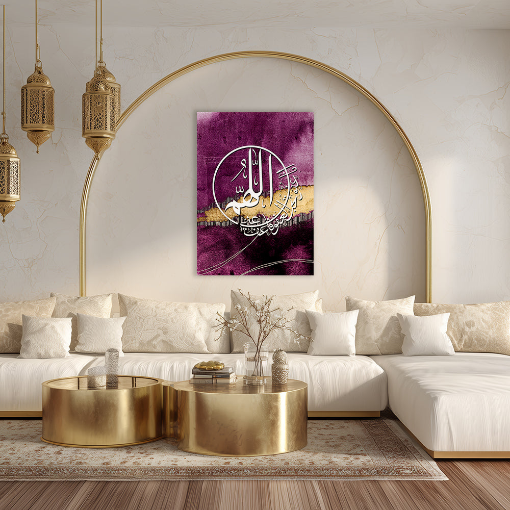 Calligraphie élégante sur fond violet, rehaussée de touches dorées pour une ambiance mystique.