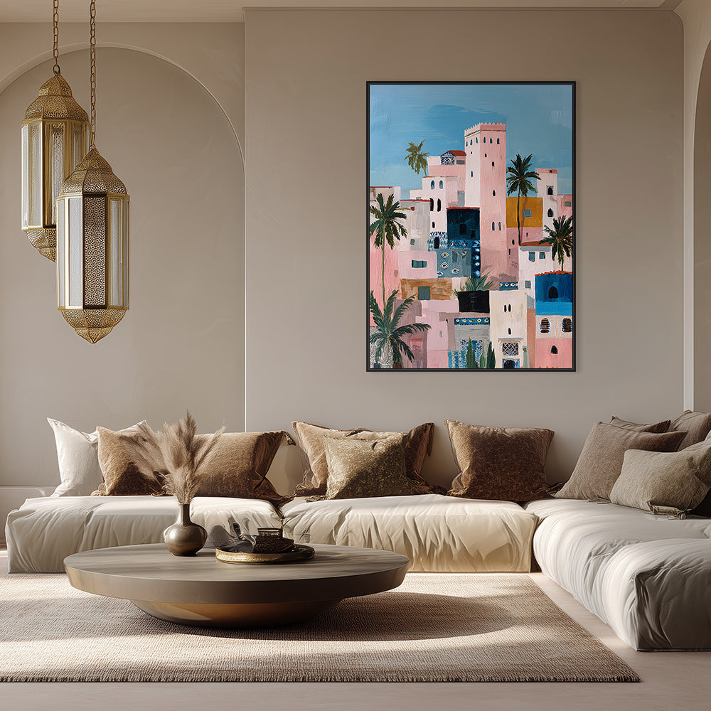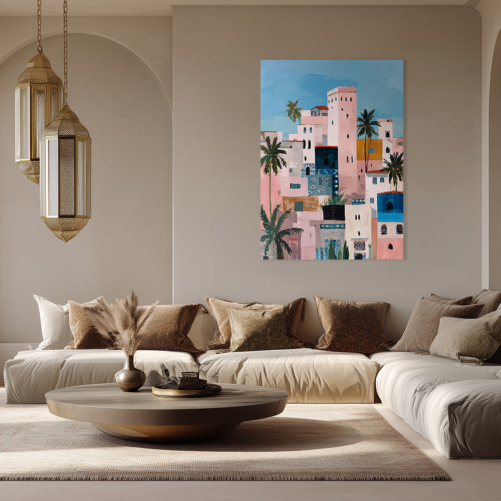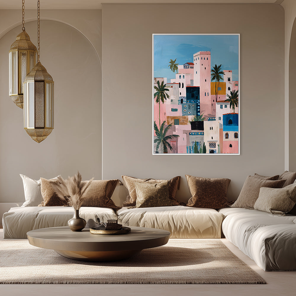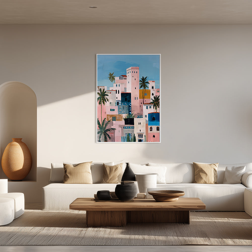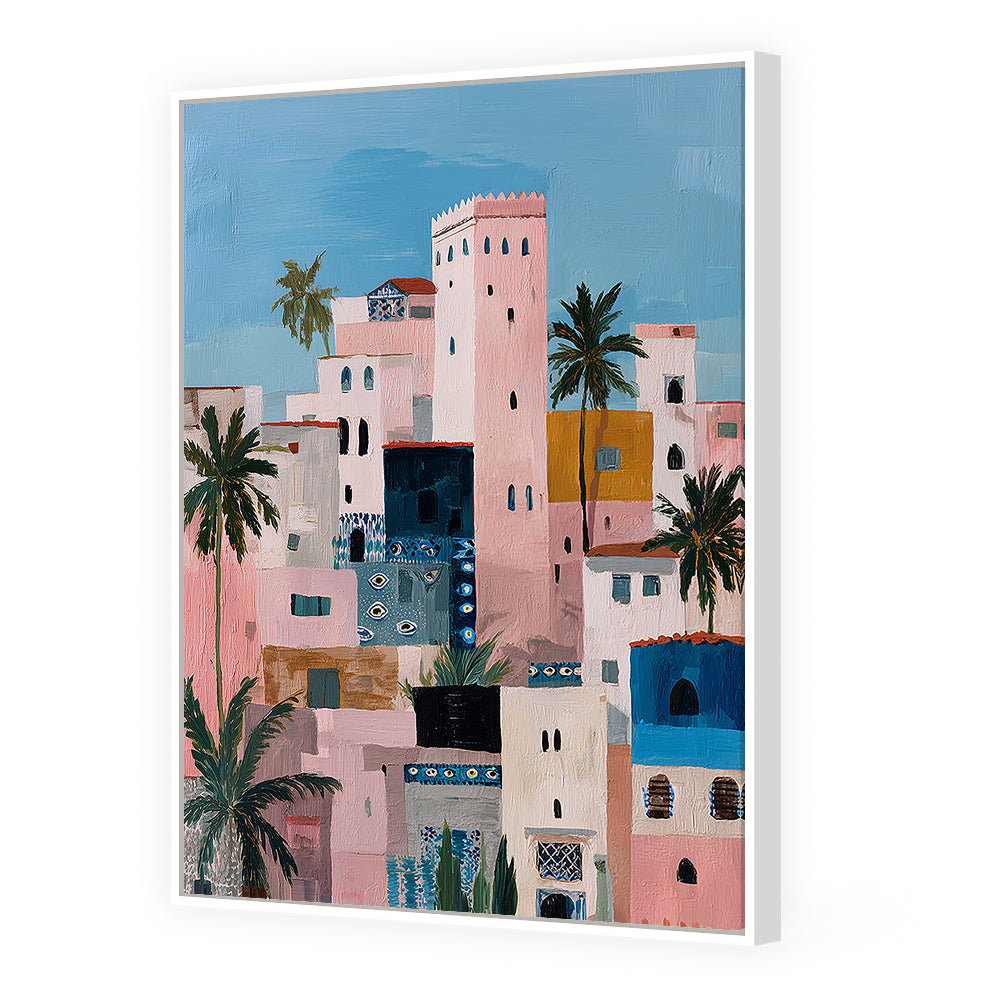 Explorez l'architecture méditerranéenne avec ses couleurs vibrantes et ses palmiers majestueux.