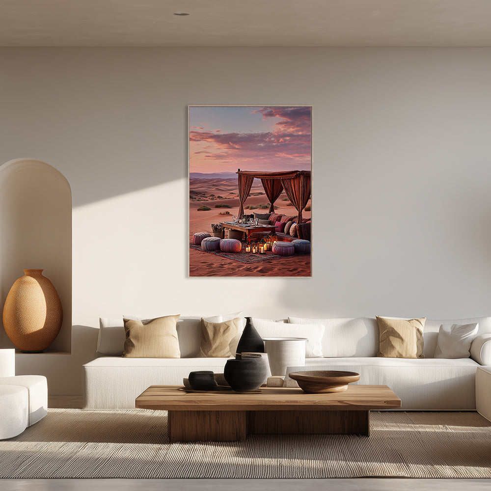 Évadez-vous dans un désert enchanteur avec ce cadre romantique au coucher du soleil.