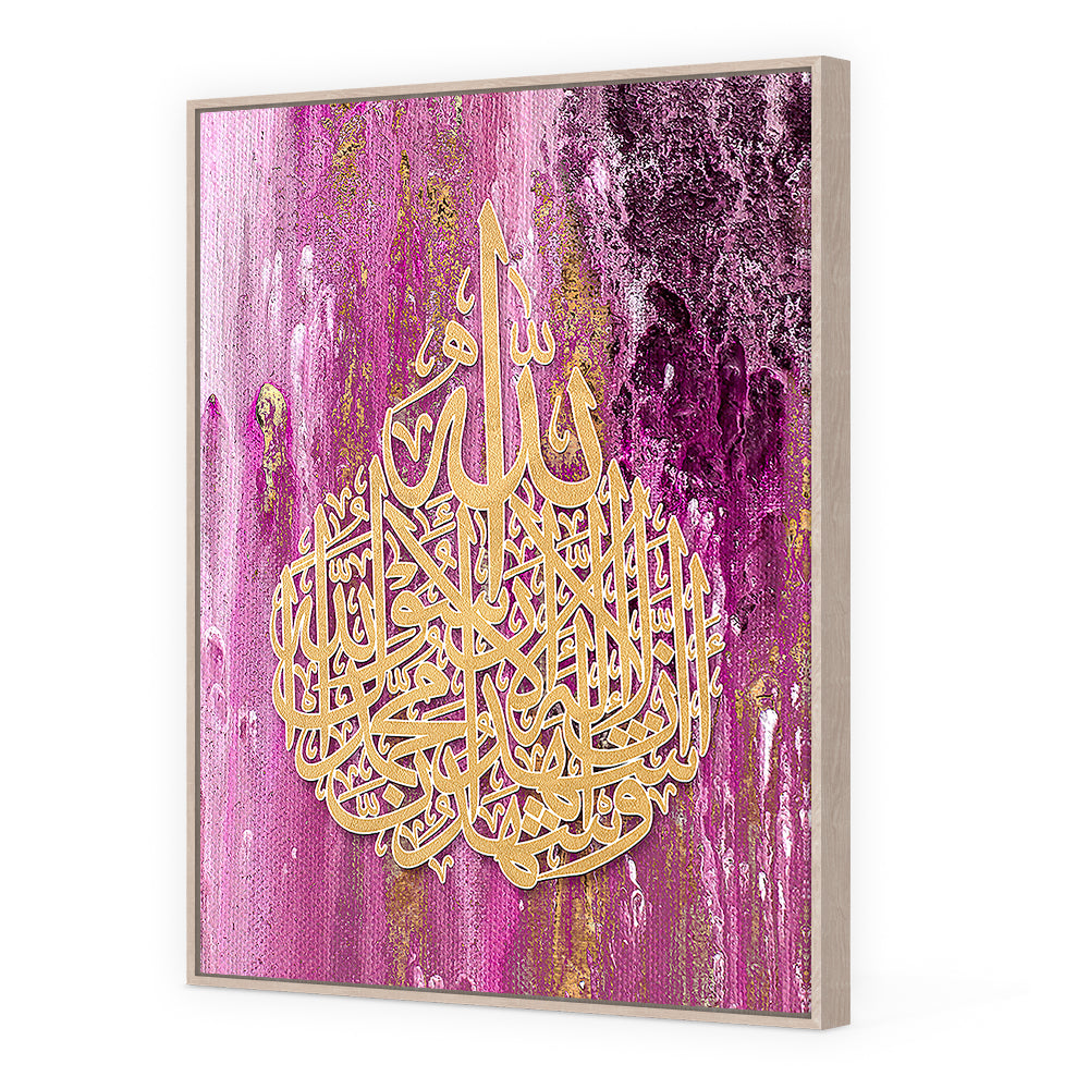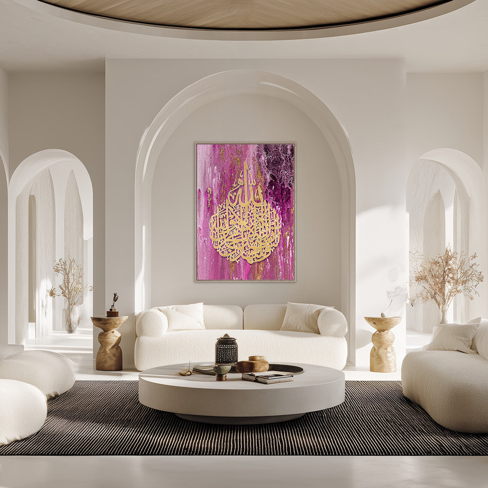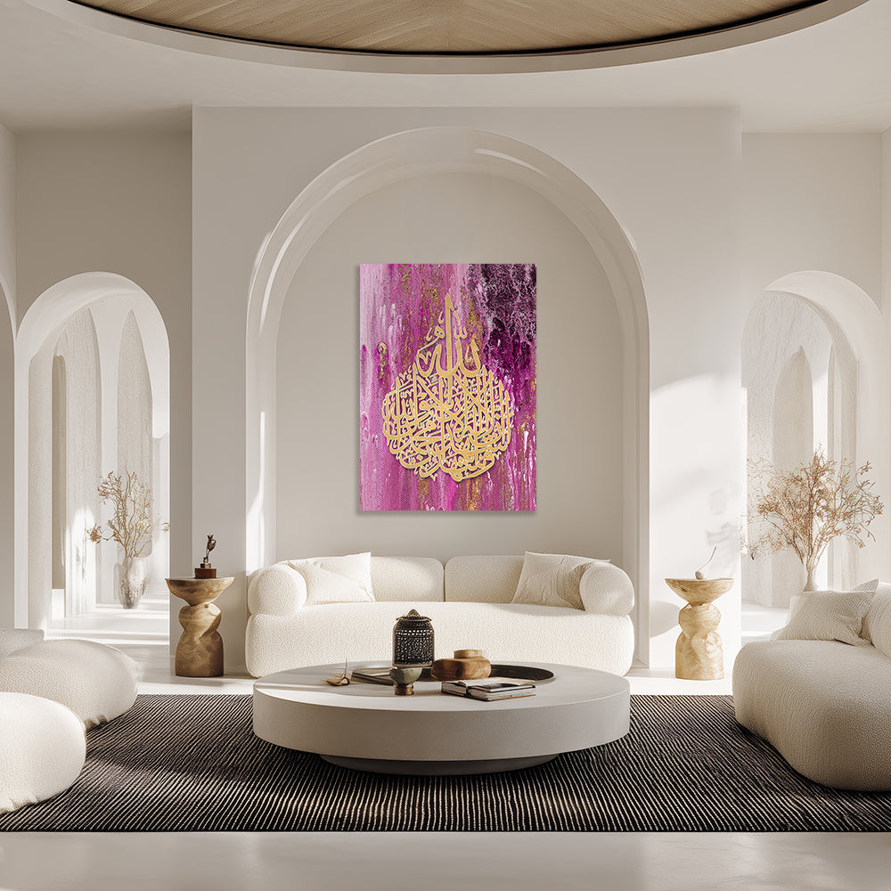 Calligraphie dorée sur fond violet, fusionnant tradition et modernité avec élégance.