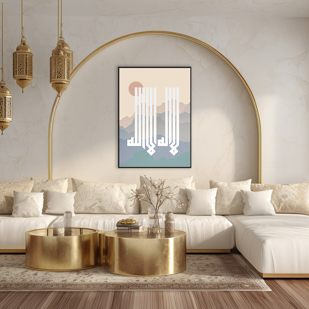 Élégante fusion de calligraphie et paysage, évoquant sérénité et profondeur artistique.