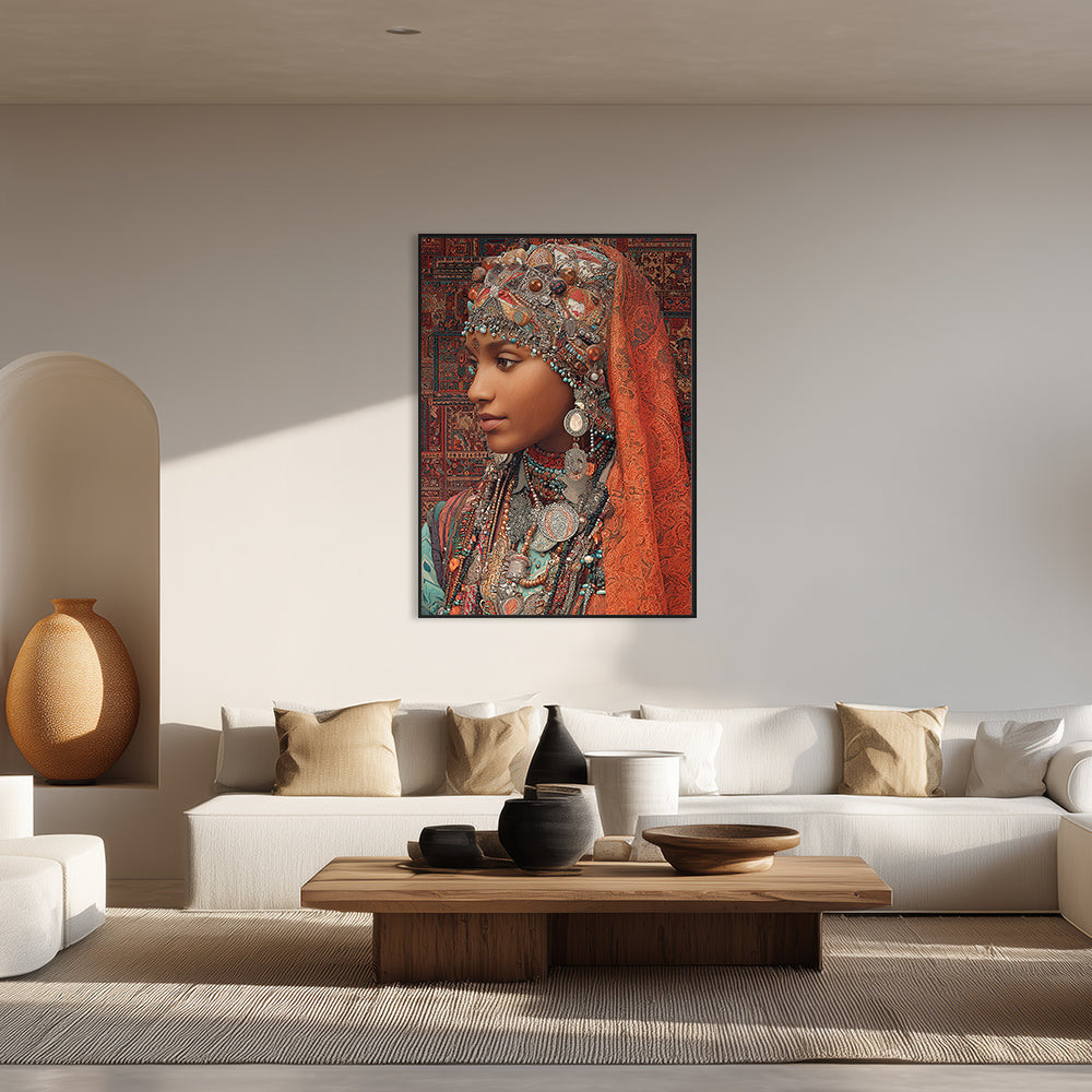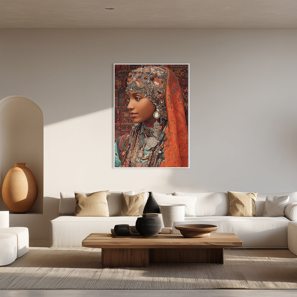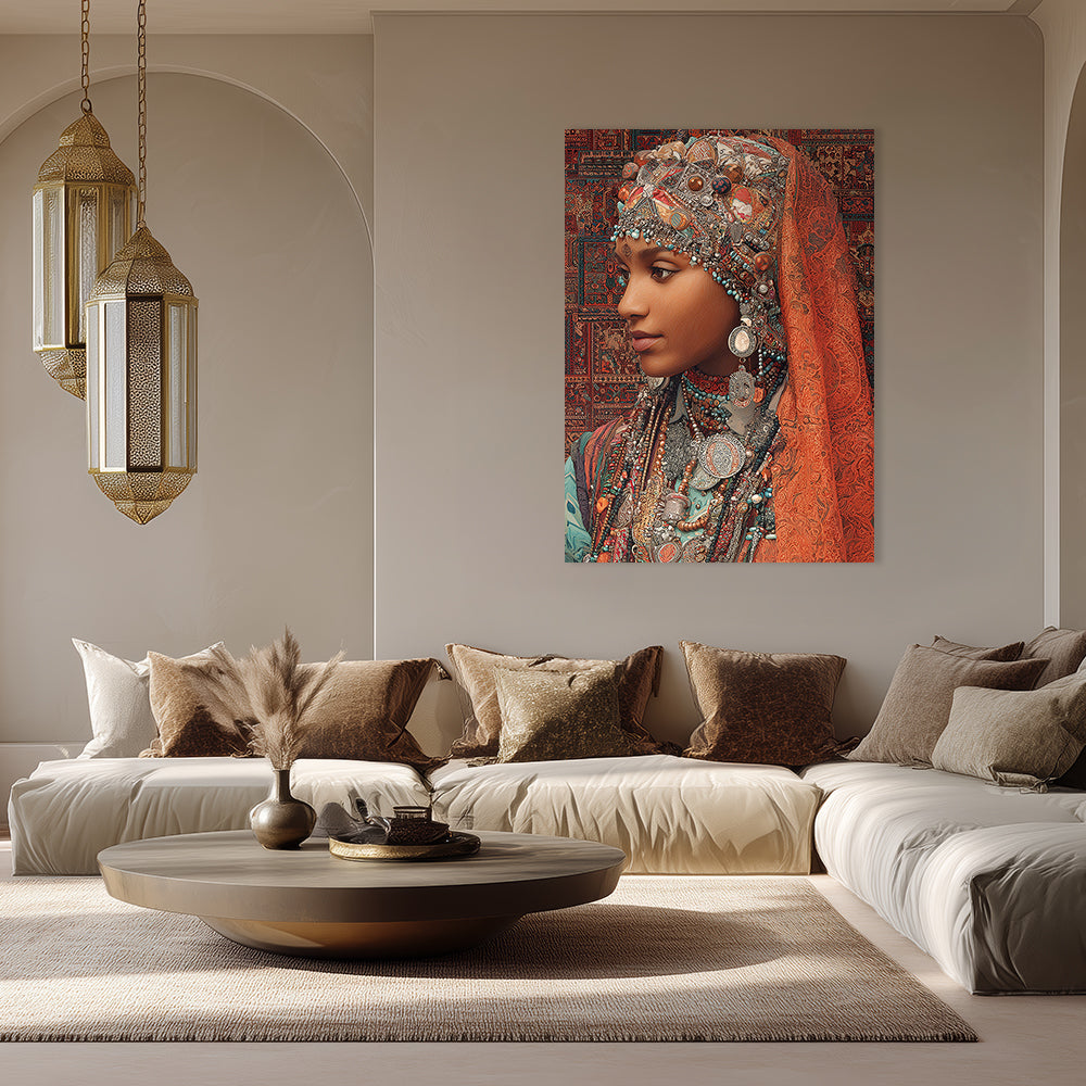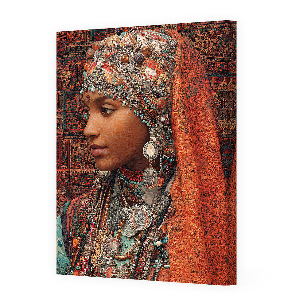 Portrait vibrant d'une femme ornée de bijoux, évoquant une riche tradition culturelle.
