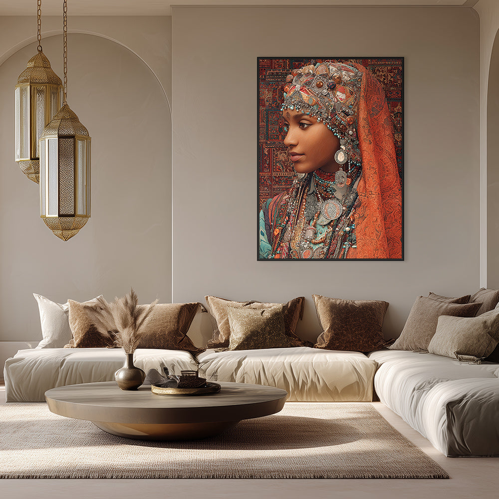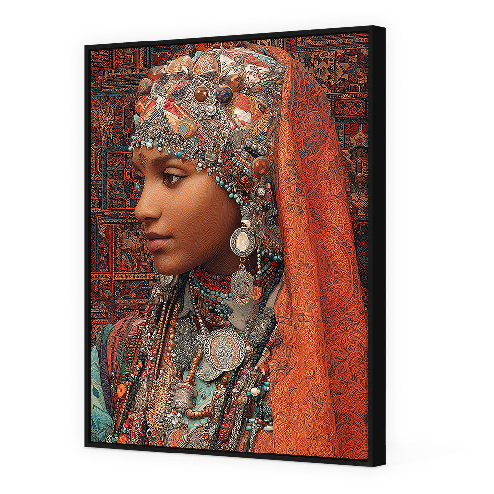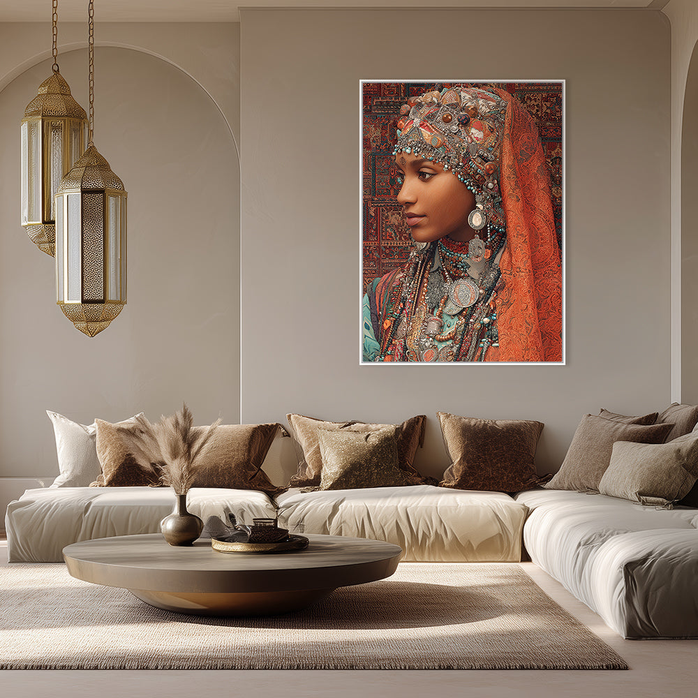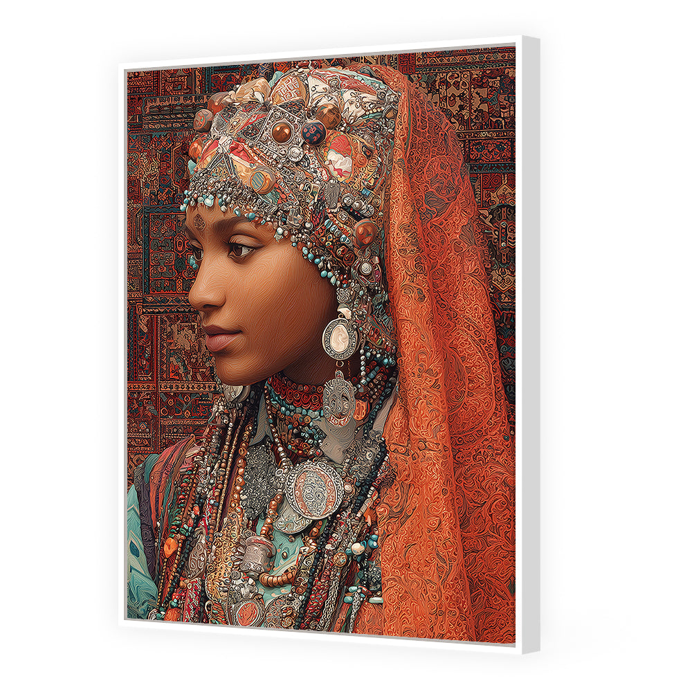 Portrait vibrant d'une femme ornée de bijoux, évoquant une riche tradition culturelle.