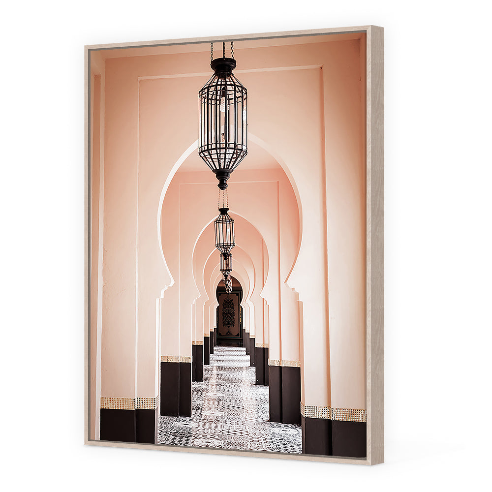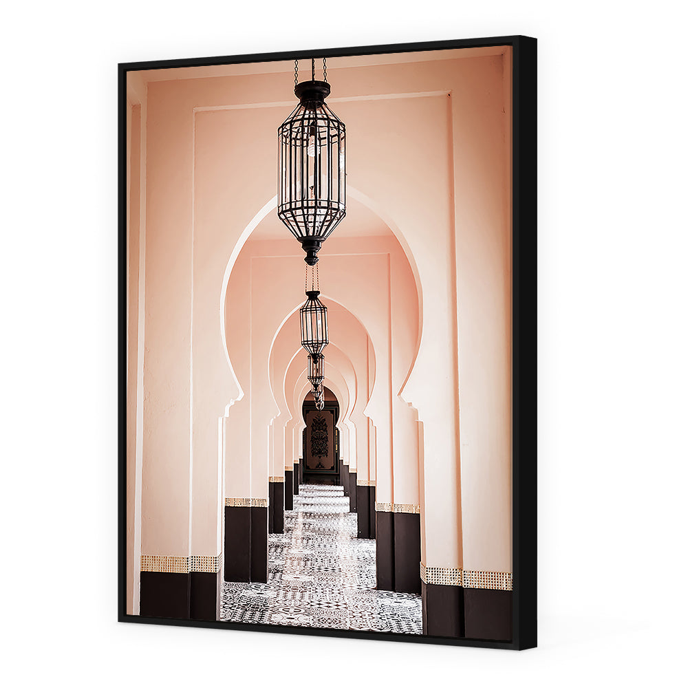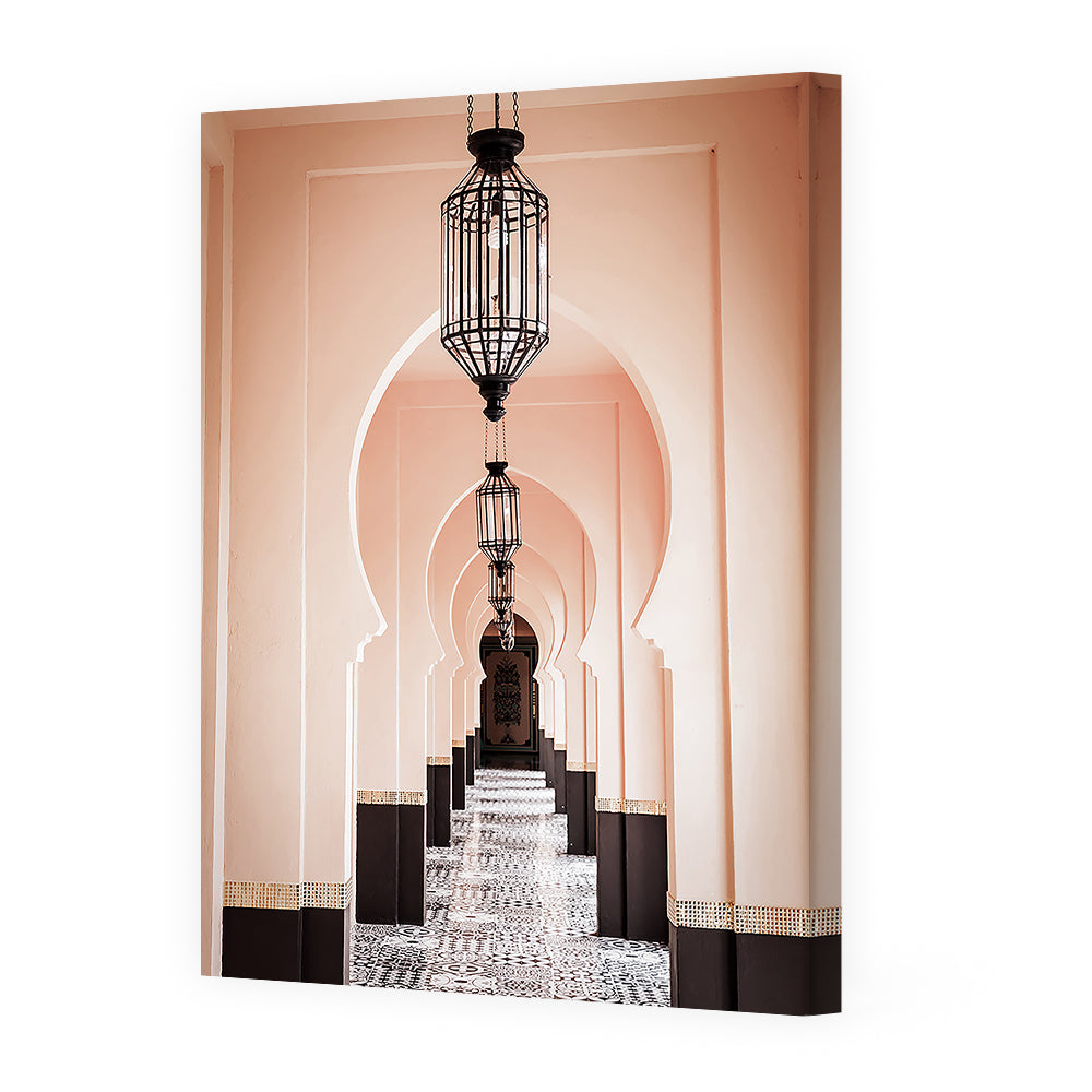 Un couloir orné de lanternes suspendues, évoquant une ambiance traditionnelle et spirituelle.