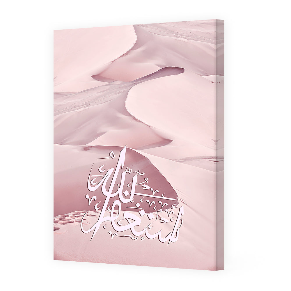 Élégante calligraphie sur fond de dunes rosées, évoquant sérénité et modernité.
